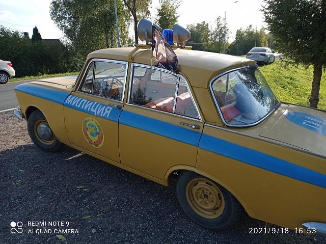 Обочину перегородил "Москвич" ГАИ,готовый к патрулированию.
