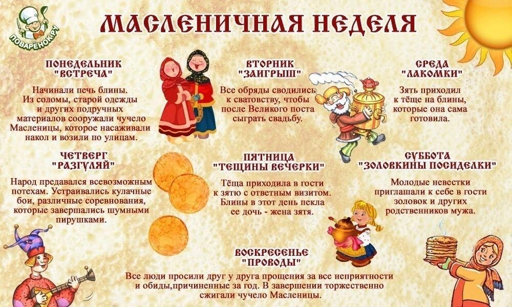 Важным аспектом Масленицы является традиция приготовления и употребления блинов - тонких оладий из муки, молока, яиц и дрожжей. Блины считаются символом солнца и изобилия, и их готовят на протяжении всей недели. Также блины употребляются с маслом, медом, и различными начинками.
