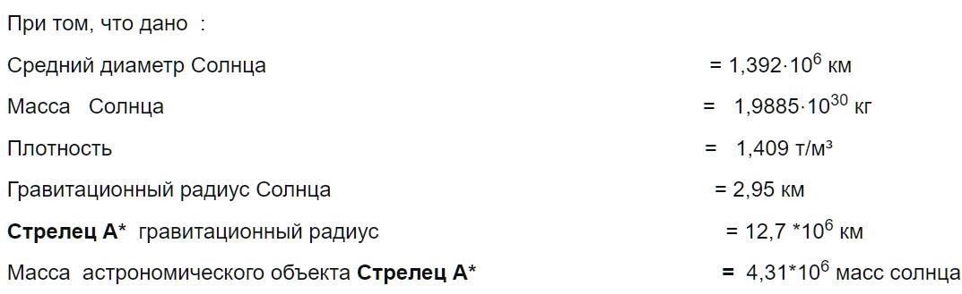 Масса астрономического объекта Стрелец A* = 4,31⋅10*6 масс солнца