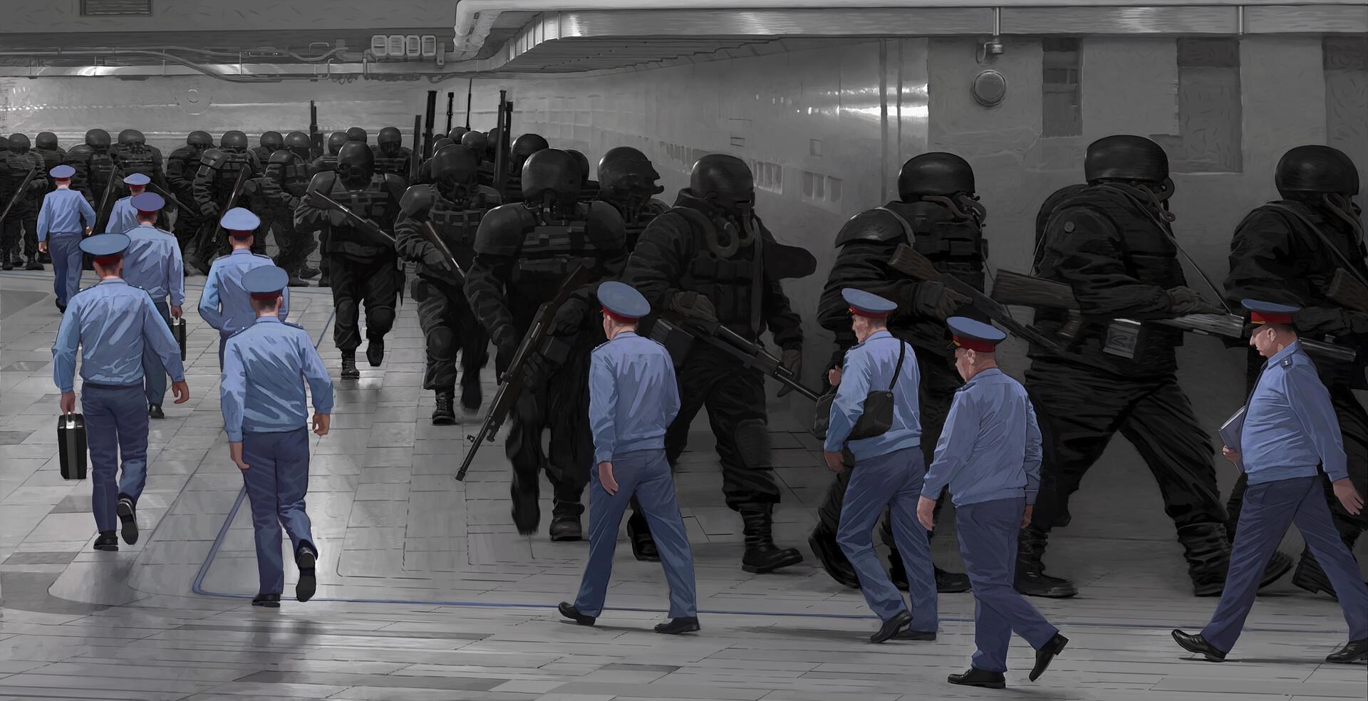 Включив автоматическую няню, мать окинула взглядом детскую и, убедившись, что всё в порядке, вышла вместе с остальными домочадцами наружу. Там стандартное семейство №314-ГП- 79 влилось в общий поток сине-чёрных мундиров, которые в шаг двигались ко входу в метро.