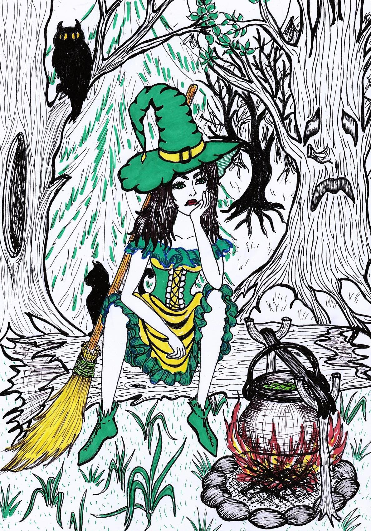 С моими потугами в художестве можно ознакомиться в разделе иллюстрации или взглянуть на эту заскучавшую ведьмочку.