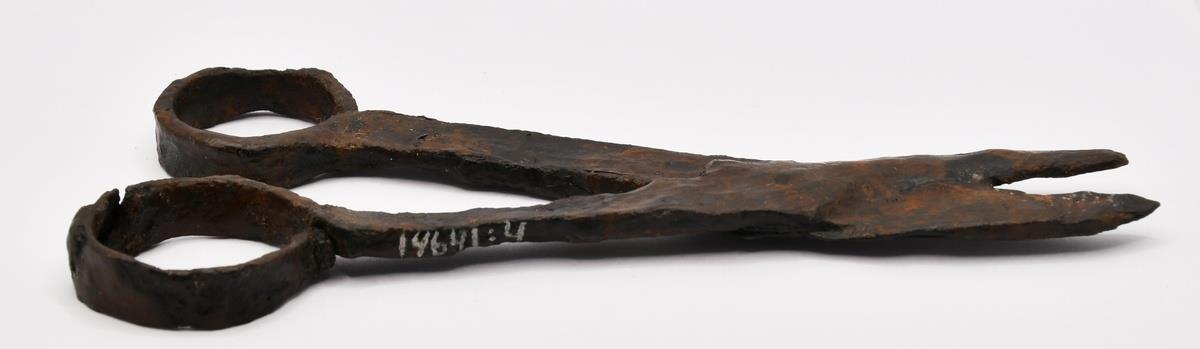 Обратите внимание на шарнирные железные ножницы в хорошей степени сохранности: длина 138 мм, диаметр ушек - 28-29 мм.