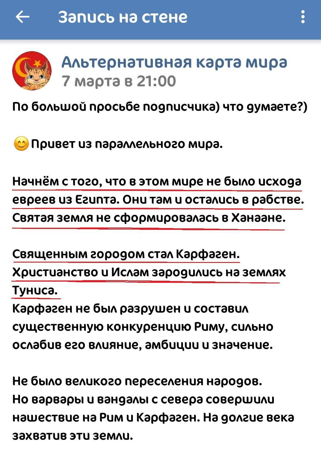 Например - см. скриншот - не понимают, что если бы Исхода не было, то не было бы и самих евреев, они бы не сложились как народ. Не сформировался бы иудаизм. Из него не выросло бы христианство. Тем более, не появился бы ислам. И это я ещё сильно упрощаю, для наглядности. Все мировые религии возникли в результате особенного стечения множества исторических обстоятельств. Достаточно убрать какое-то из них, и вся привычная нам картина мира сразу же развалится. Чтобы затем сложиться по-другому. Именно так работает история.
