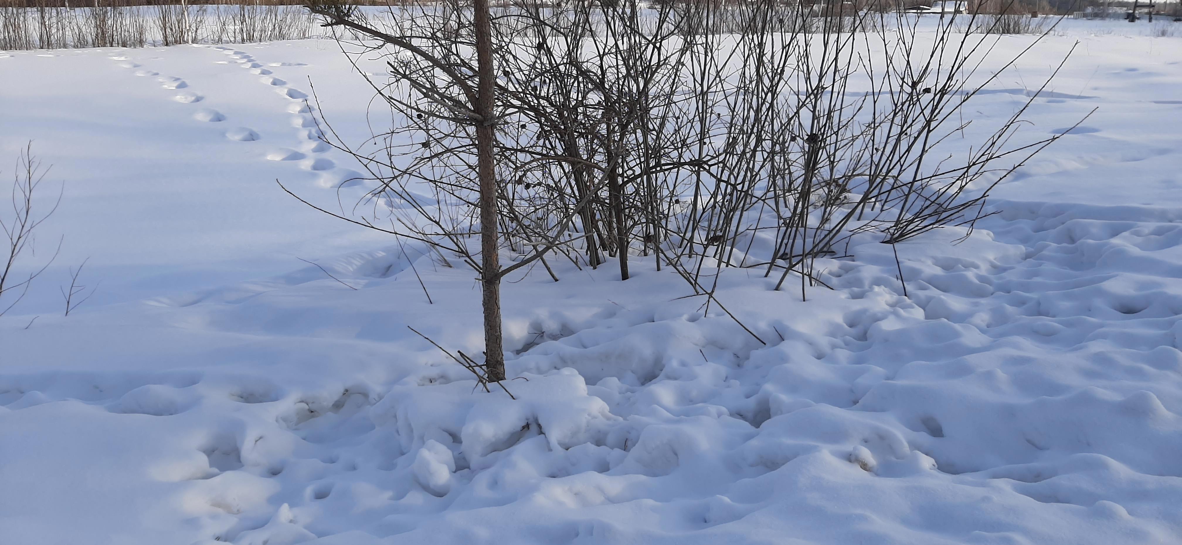 Снега в этом году выпало много, поэтому косулям трудно добывать себе еду. В результате они общипали иголки у мелких сосёнок и молодые веточки.