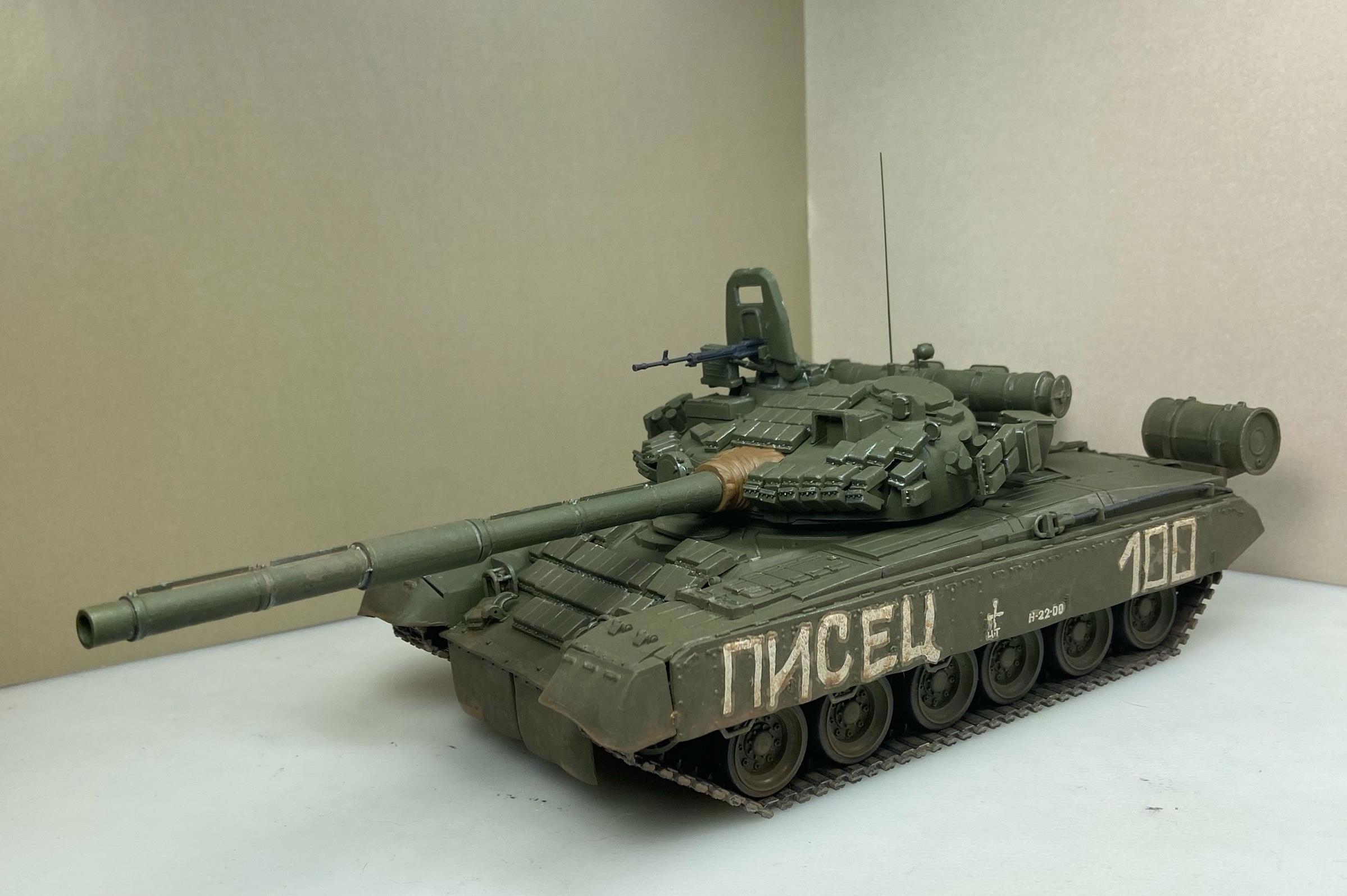 А ещё готов Т-80. По итогу это было не так долго (10 дней - точнее, 10 вечеров), хотя без неприличных слов не обошлось, конечно. А жаль, я ещё посматривал за звездовский же Т-72. Но в целом получилось лучше, чем я ожидал - хотя в итоге я переборщил с пылью и грязью (слишком слабо развёл краску):