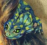 На углу подушки сидело «милое» существо. Оно походило на помесь геккона и капюшонной ящерицы, которая при опасности раздувает своё украшение на шее и пугает подобным грозным видом предполагаемого врага, только у этой животинки шейные кожные складки были не очень большими. Толстенький хвост средней длины, пупырчато-чешуйчатая кожа синего цвета с ядовито-жёлтыми пятнами неправильной формы. На развёрнутом капюшоне – два алых пятна, похожих на глаза дьявола. При звуке моего голоса геккончик повернул голову и закрыл пасть, из которой доносилось услышанное ранее шипение. Его ярко-зелёные глаза с чёрными вертикальными зрачками уставились на меня, а на мордашке появилась… улыбка! Прямо «от уха до уха»! Верхние и нижние веки выступали над глазами, отчего те казались ещё более выразительными. Капюшон, натянутый на шипы, торчавшие с обеих сторон головы, улёгся, и мордочка приобрела миролюбивый и добродушный вид. Существо издало курлыкающий звук и, подняв толстый хвост, завиляло им, как собачонка при виде хозяина.