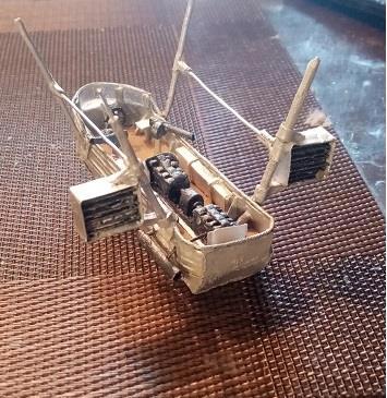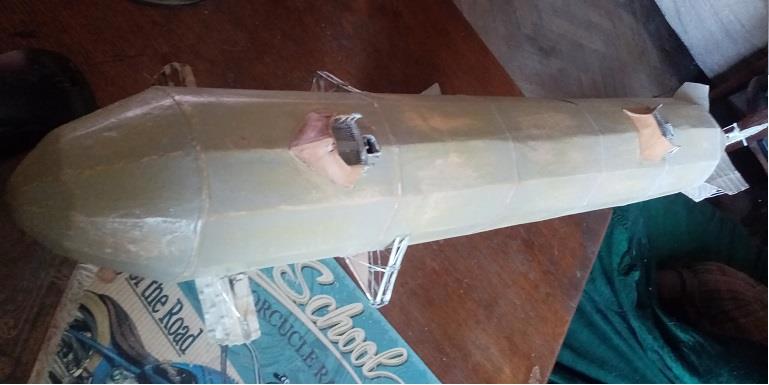 Пока готовы - пулемётные верхние площадки, носовые рули высоты, носовые моторами, пилотская гондола с частью начинки (дизеля, штурвал, топливные емкости)
