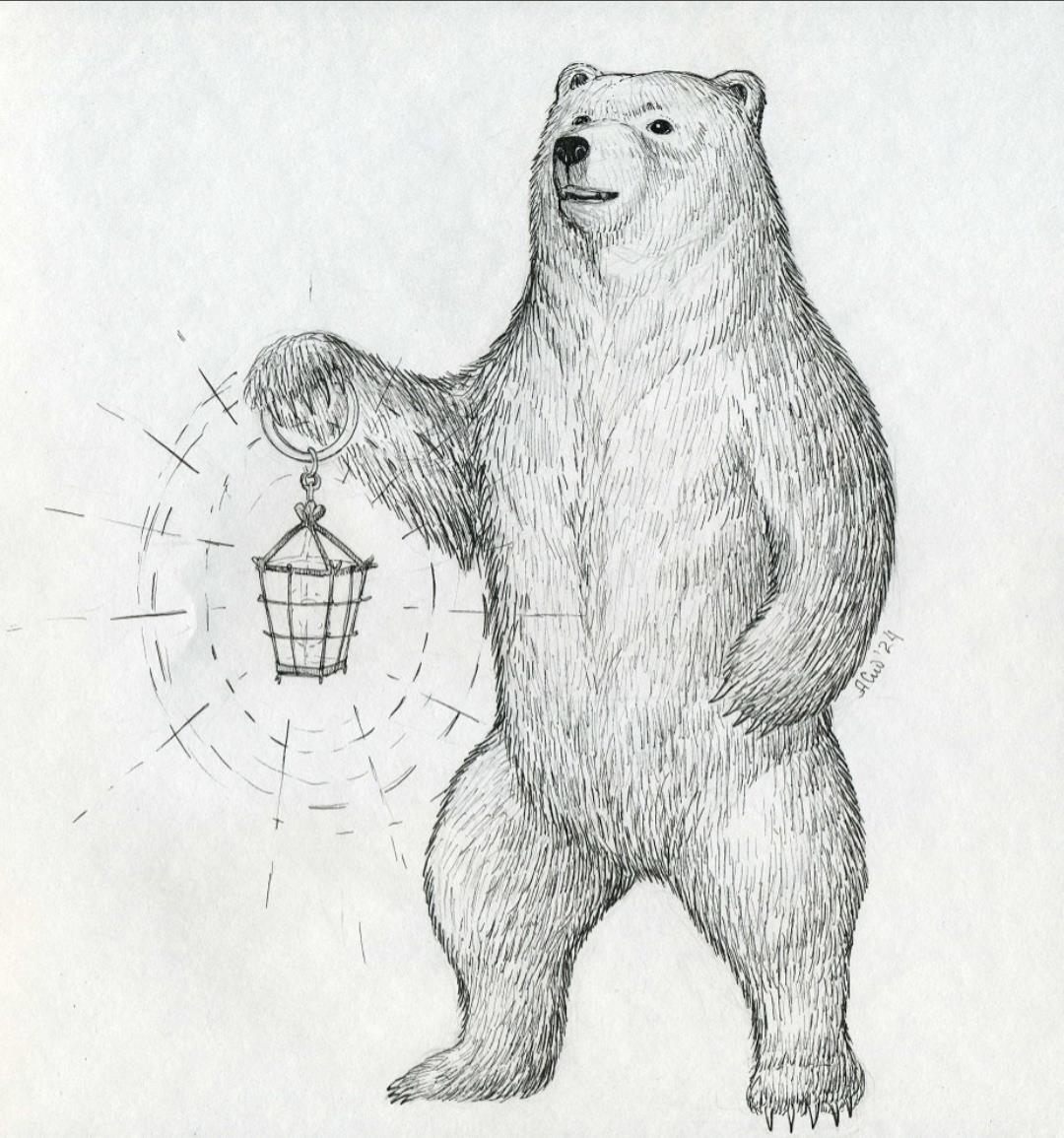 Медведь с фонарем – картинка-символ (или нет?) из одной магической книги; по сюжету он должен быть более… тревожным, а у меня, кажется, получилась милота.