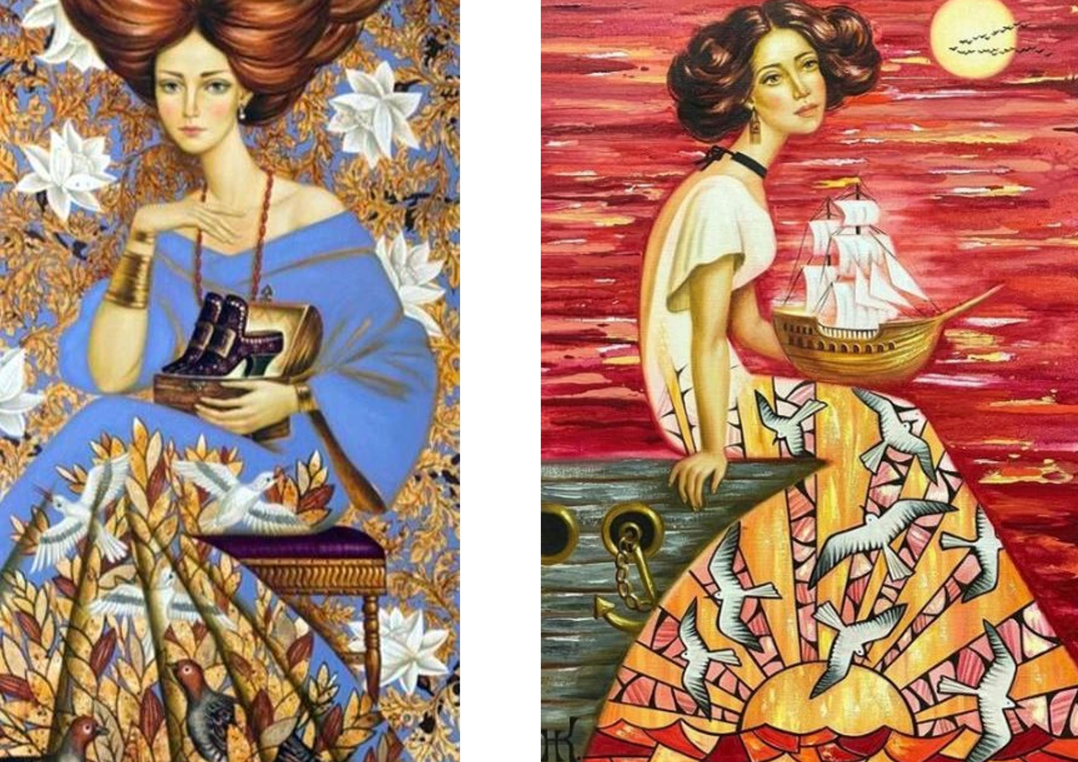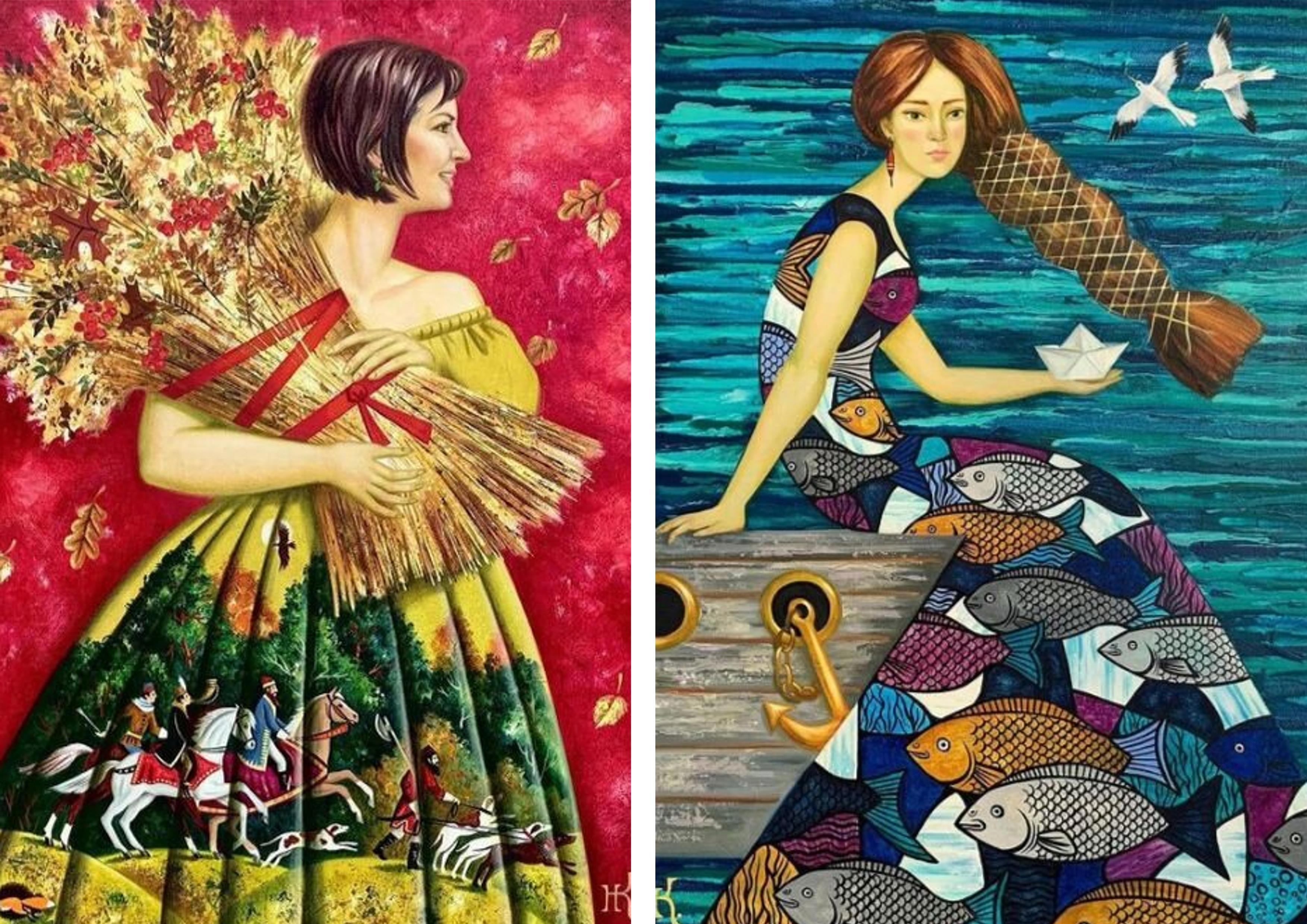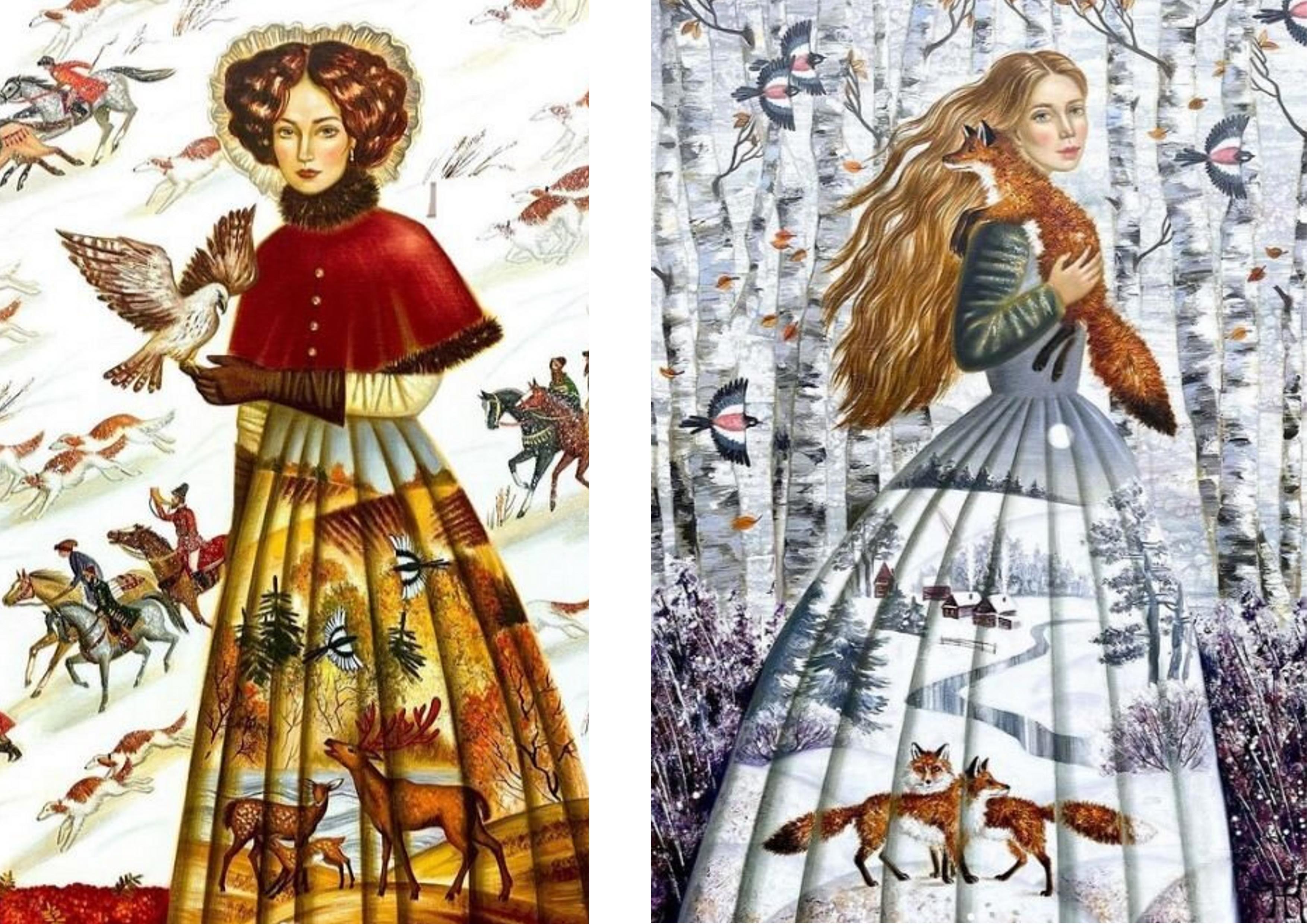 Автор: ЛилияДорогие друзья, сегодня покажу картины художницы Натальи Климовой. Когда я несколько лет назад их увидела, они мне показались необычными из-за странного второго плана, другого пространства что-ли, которое художница расположила на платьях изображённых женщин. Картины необычные, даже жанр не определишь однозначно. Но они останавливают взгляд. Хочется рассмотреть подробно, вникнуть... Мне кажется, что они визуализируют мысль о загадке в женской душе... Посмотрите сами. Возможно, что вам тоже эти картины понравятся. :)