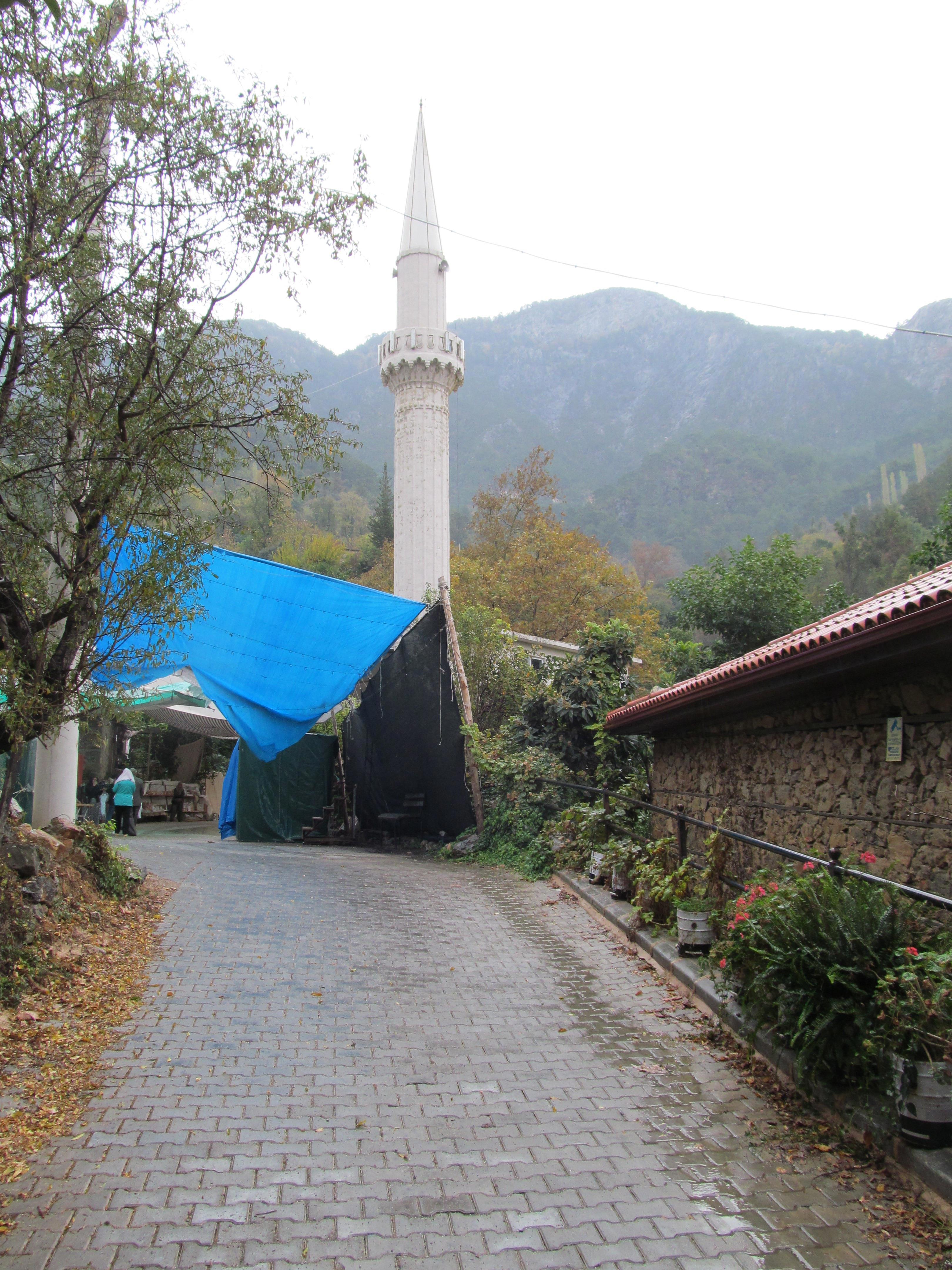 Накрапывал дождь, но местное население, узнав про приезд туристов, проворно выскочило из домов и тут же разбило торговые палатки прямо напротив мечети)