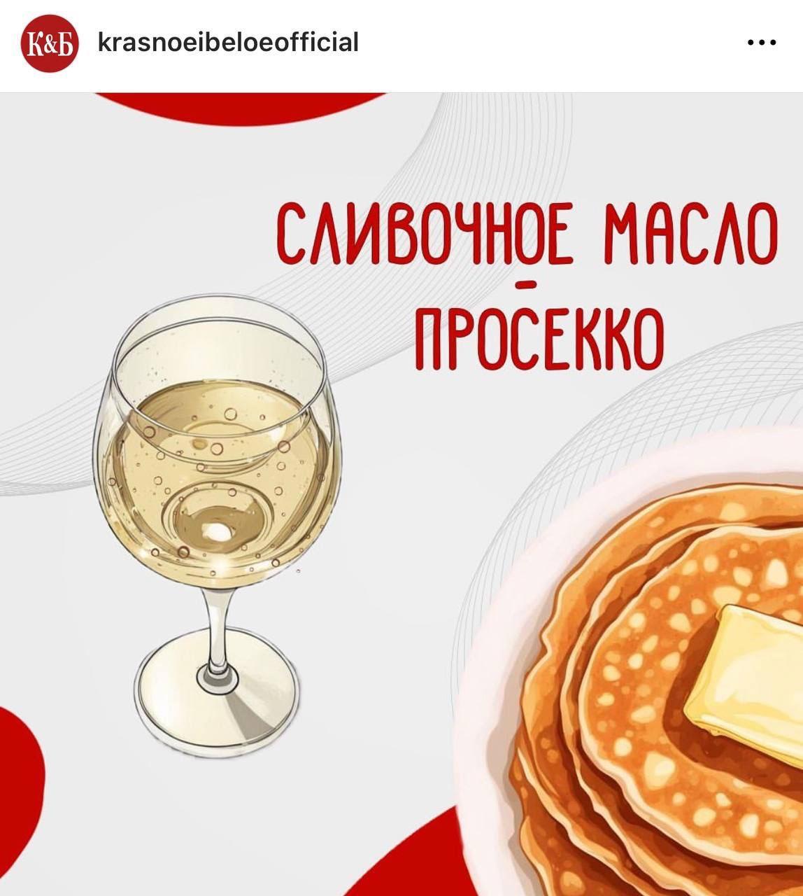 Автор: Натали НаталиВ "Красное и Белое" сделали забавный гайд по сочетанию блинов с разными начинками и вина.