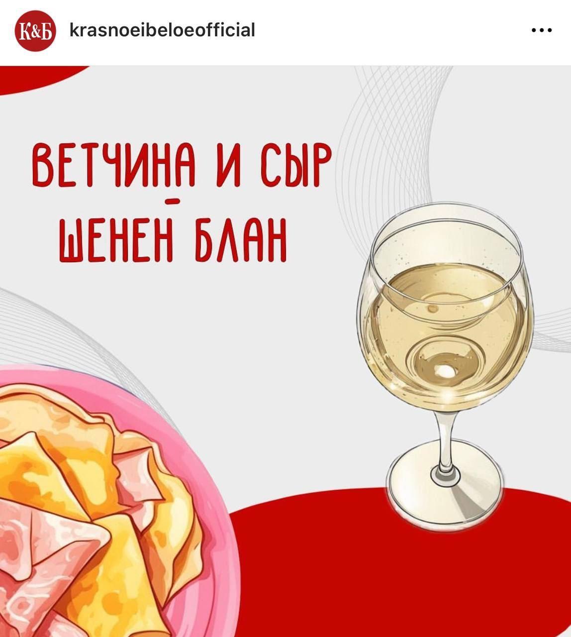 В "Красное и Белое" сделали забавный гайд по сочетанию блинов с разными начинками и вина.