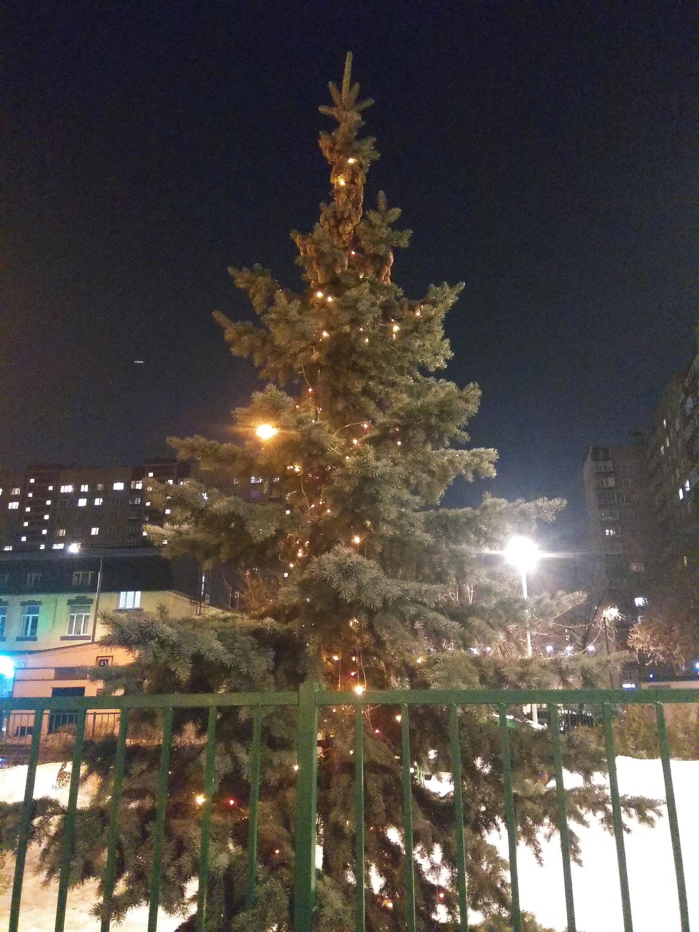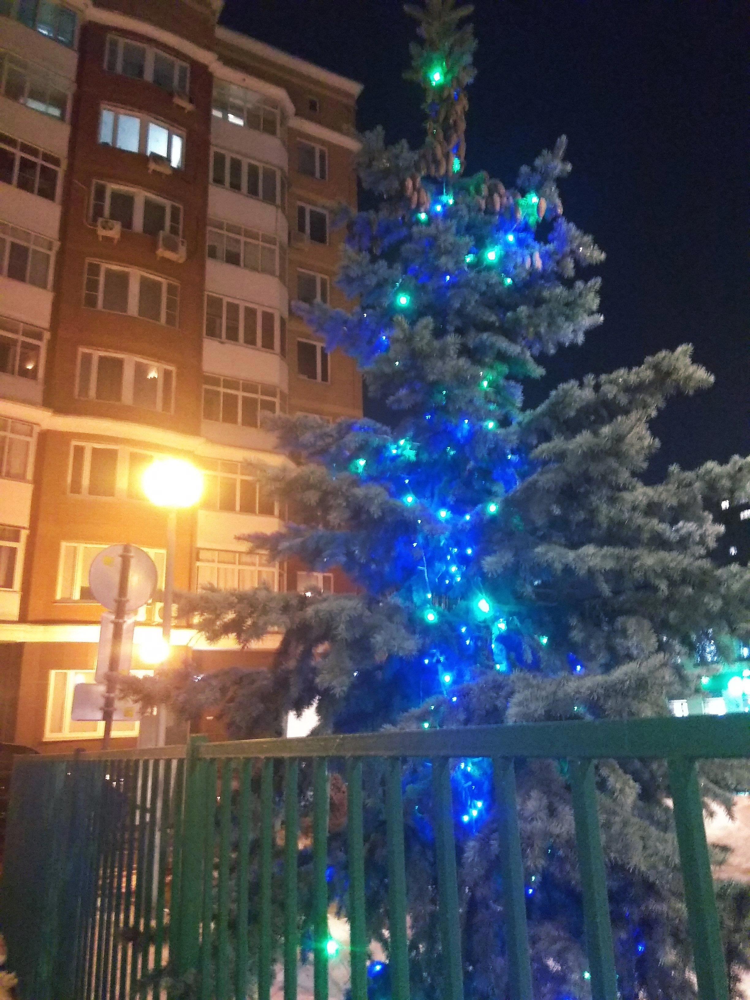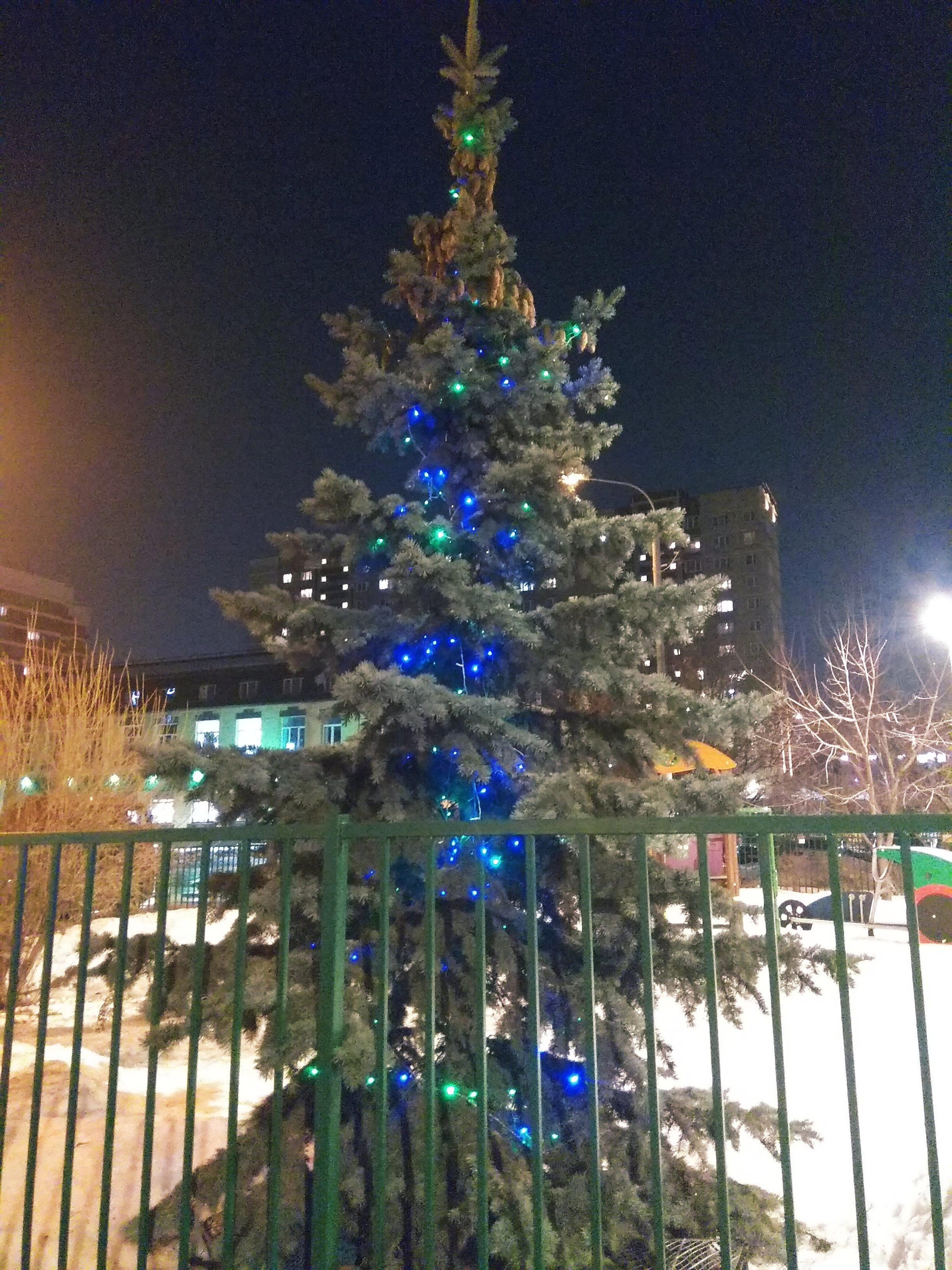 Видимо, забыли разобрать ёлку в одном из дворов. И так это странно и необычно выглядит на фоне весны!
