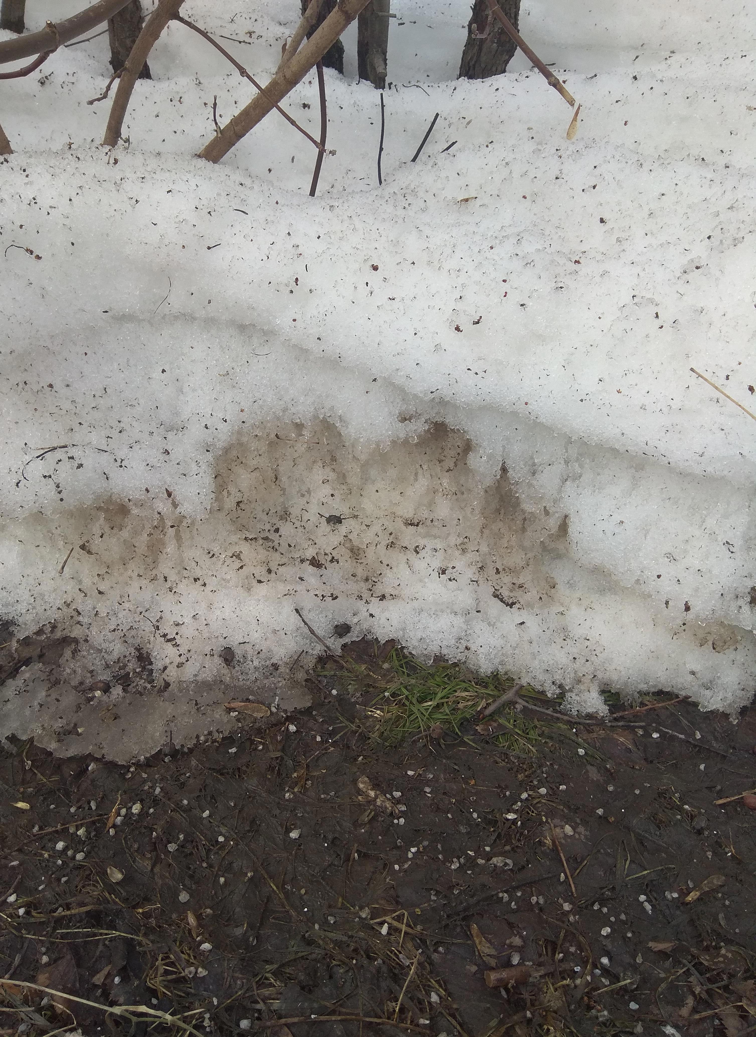 Вот такие грязные кучки, а под ними трава оживает.