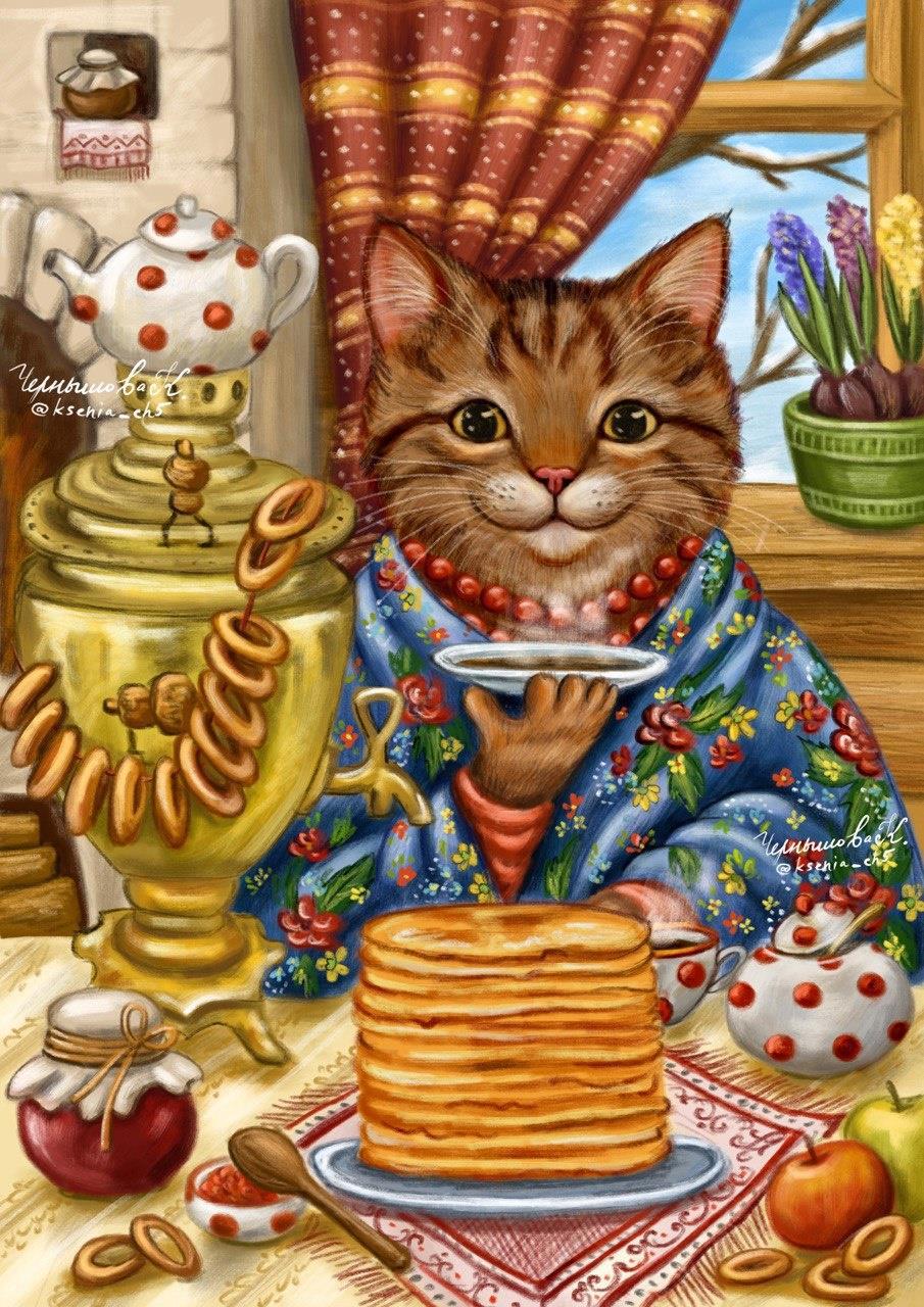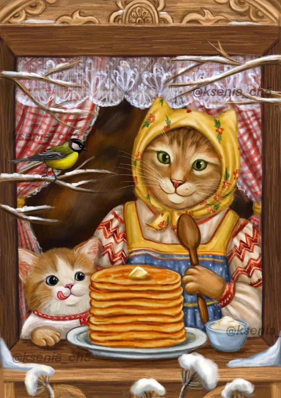 Автор: ТапроКоротко. Я котиков и кошечек люблю больше, чем блины. Но только сегодня, случайно, наткнулась на открытки, где и котики и блины - рядышком... И о Ксении Чернышовой, художнике-иллюстраторе, узнала тоже только сегодня. Вдруг и вы с ней ещё не знакомы? Знакомьтесь!