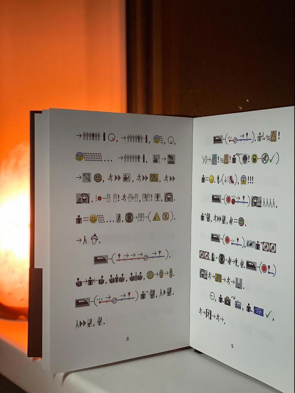 Некоторые уже умудряются прям писать смайликами. У меня аж глаза кровоточат иногда, поэтому я претворяюсь, что у меня не отображаются в телефоне все эти эмодзи и вообще даже клавиатуры нет с ними. Вот такой я динозавр. А коллеги прикольнулись и подарили мне вот такую книгу Сюй Бин: