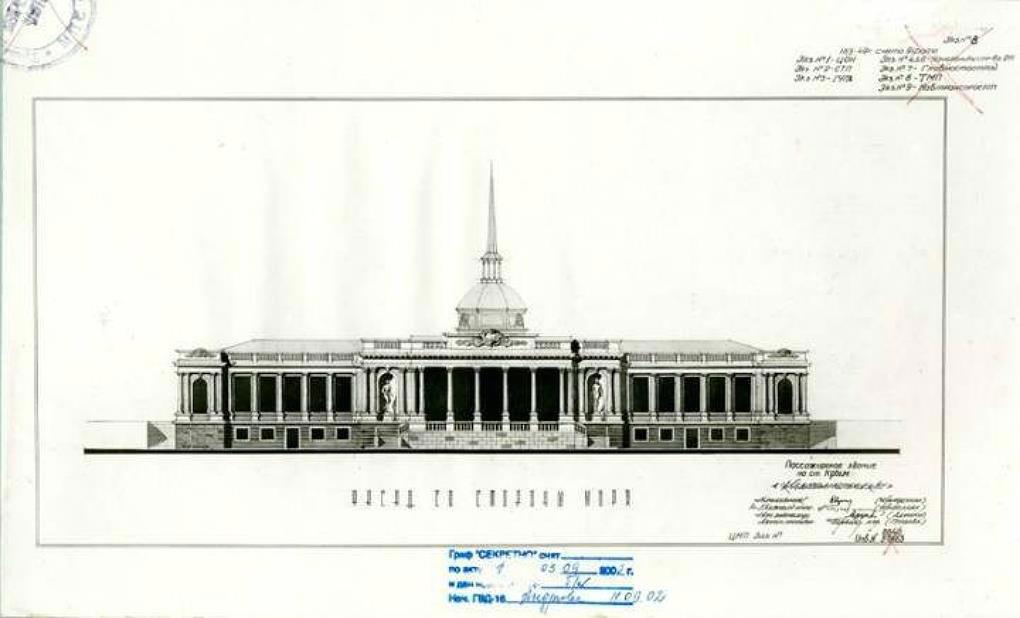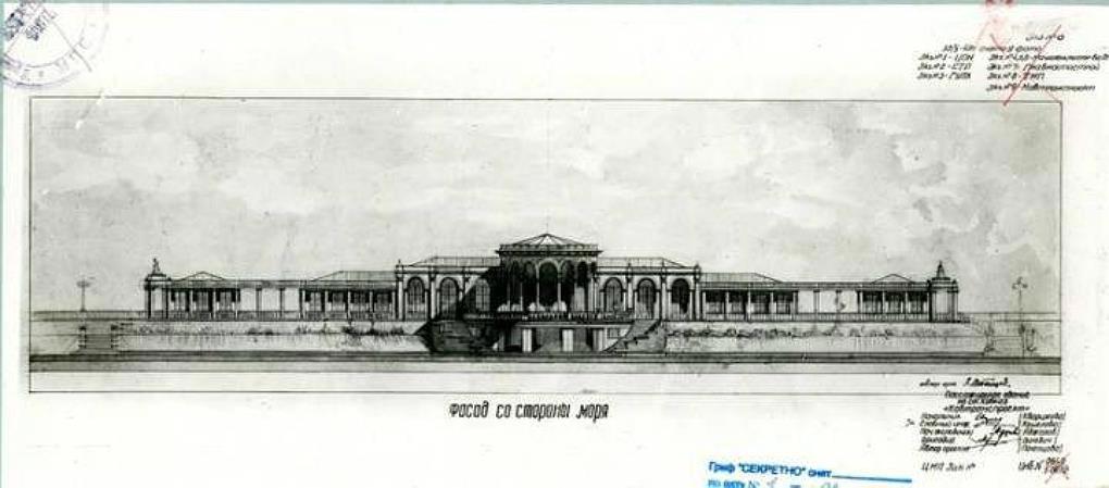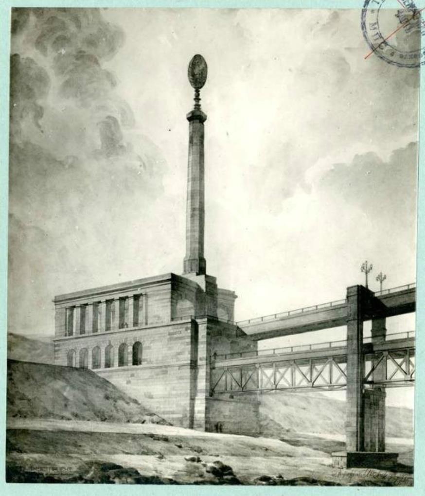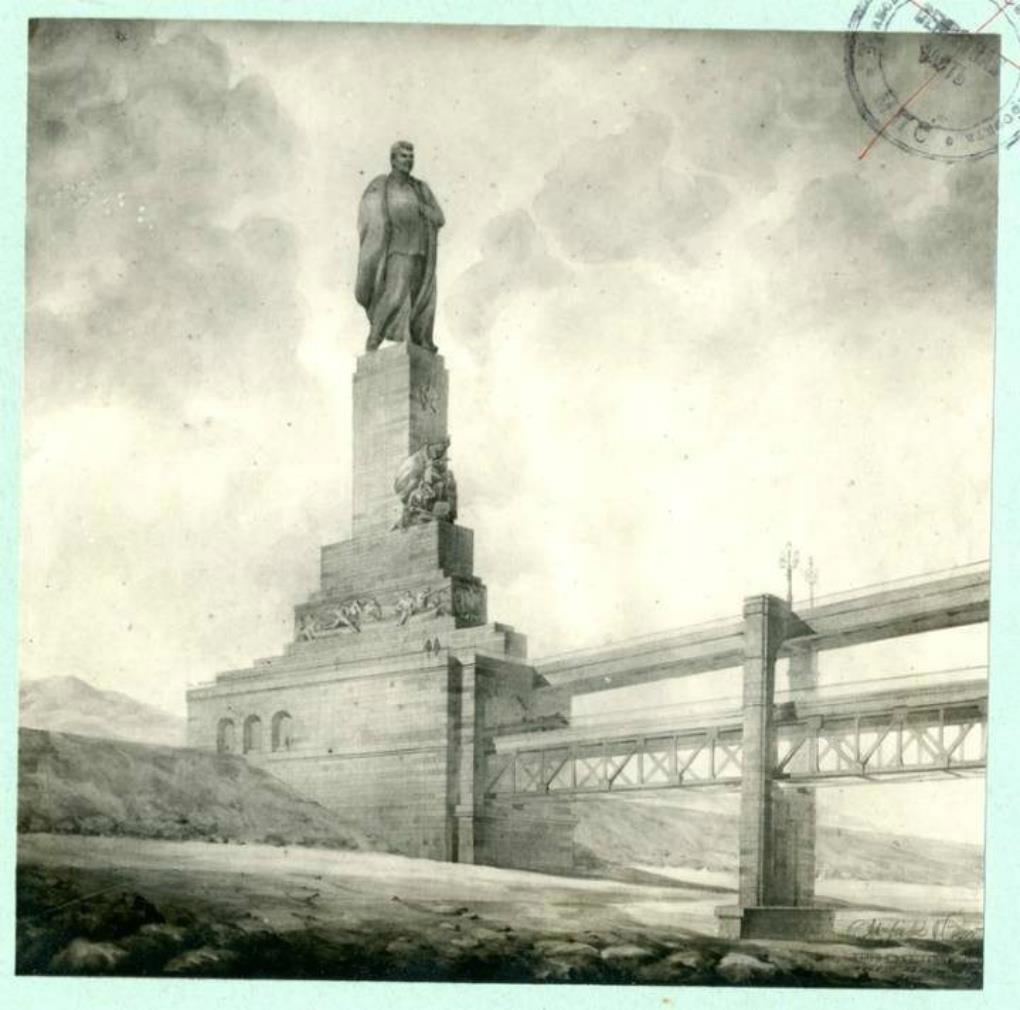 На одном берегу должна была стоять стела с гербом СССР. На другом берегу - гигантский Сталин.