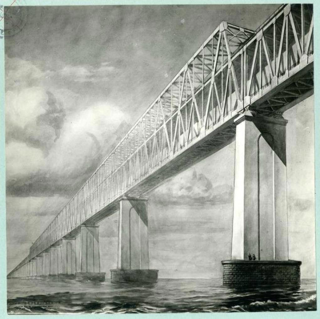 Планировалось, что мост будет совмещенным двухуровневым — весьма смелое решение для 40-х