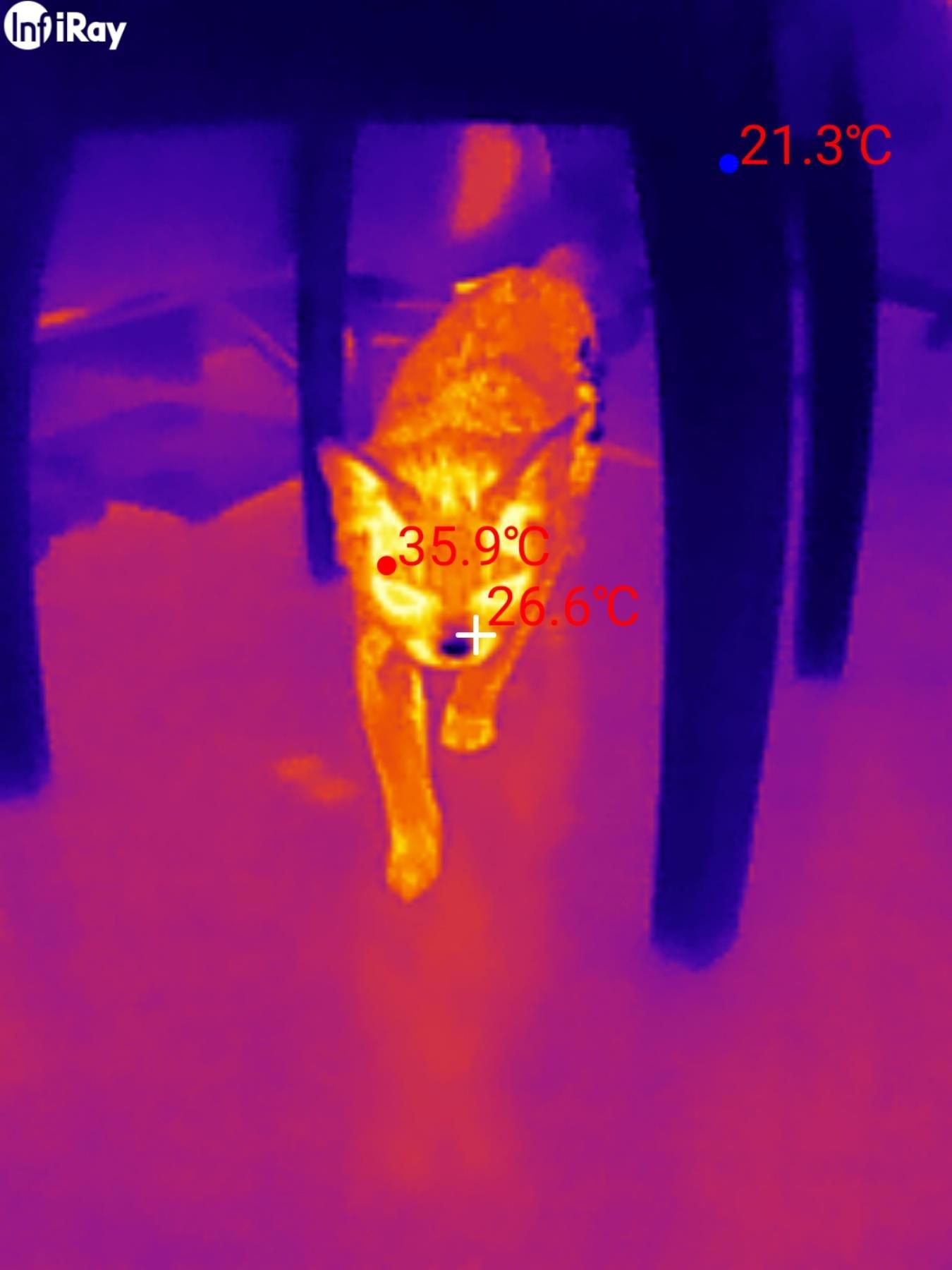 Прикупил себе тепловизор. Первое, что проверил - температуру кошачьего говна в лотке. Что называется - с пылу, с жару.