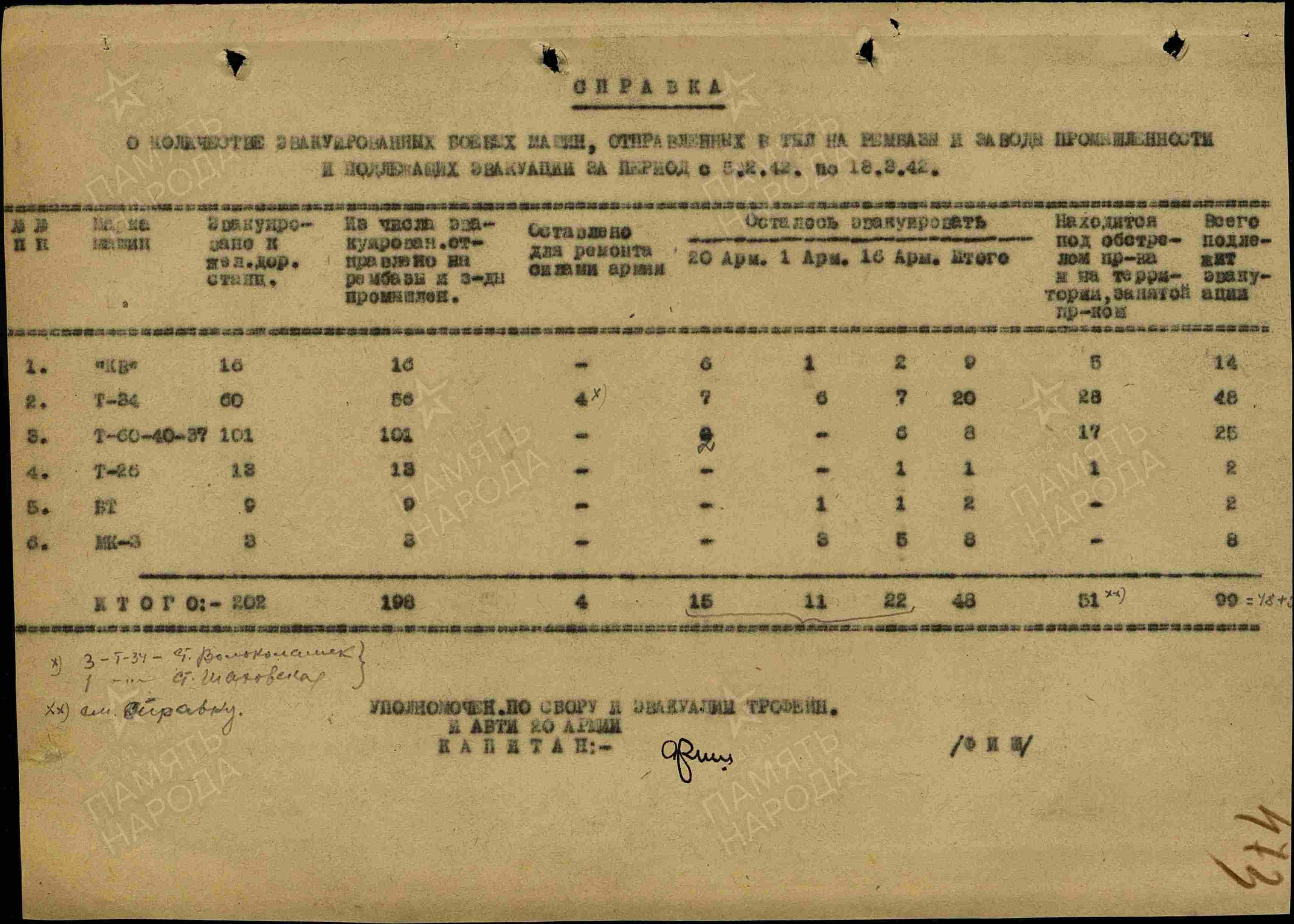 А в тему Т-60 отдельно интересна приложенная к нему справка 20-й армии про уже эвакуированные танки.