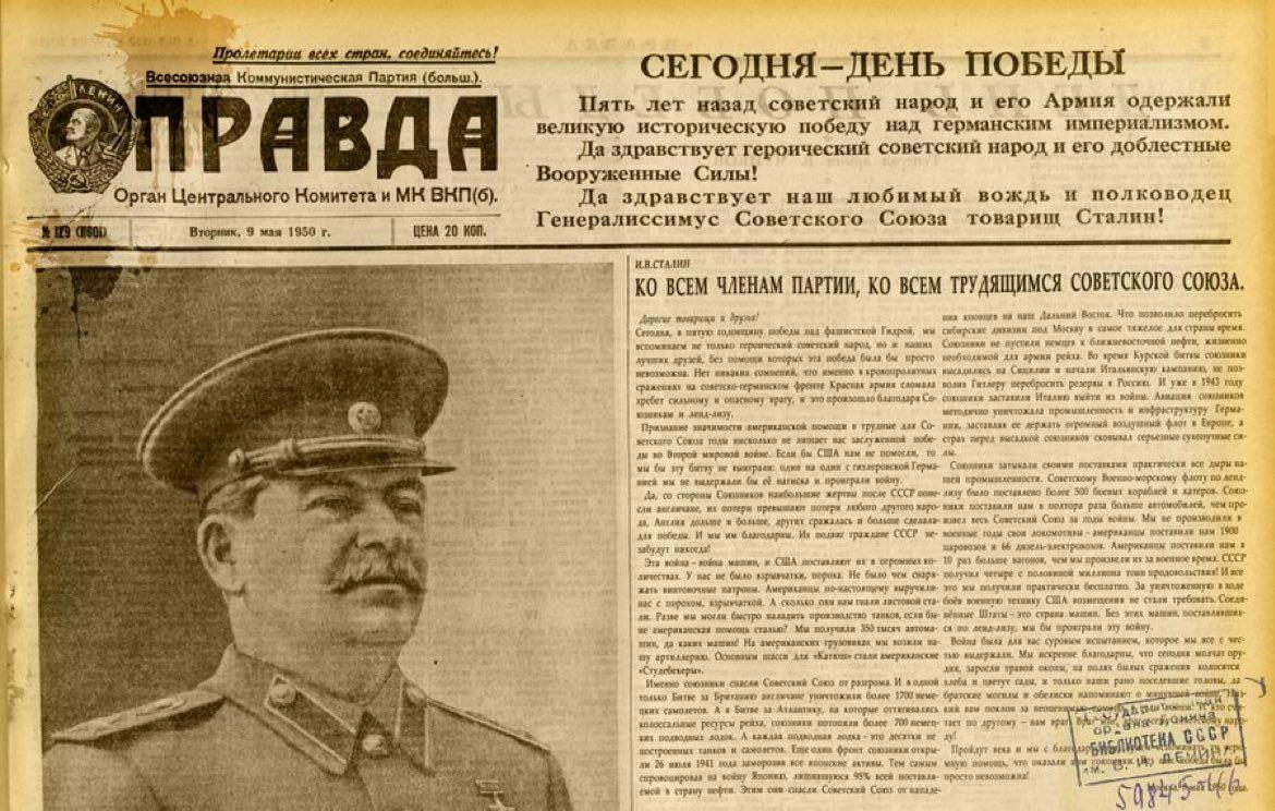 Автор: nAPOBO3В ходе споров и бесед о важности американского ленд-лиза, а так же невозможности победы СССР над Германией, моим оппонентом было выдвинуто интересное доказательство. В нем ИВС лично говорит о том, что победы не было бы, без американской помощи. Источник весьма авторитетный. Это скан передовицы газеты "Правда" от 9 мая 1950 года. В этой статье Сталин лично вылизал США, со всей возможной аккуратностью, не пропуская ни одной щелочки. Так как это сделал Сталин, не делал больше никто в истории.