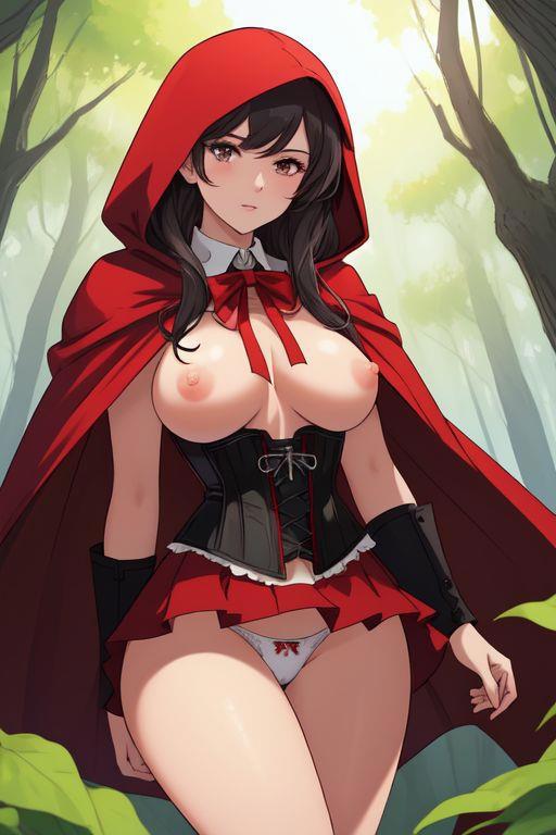 Шапочка красная, трусики белые, нейросеть другая (18+)