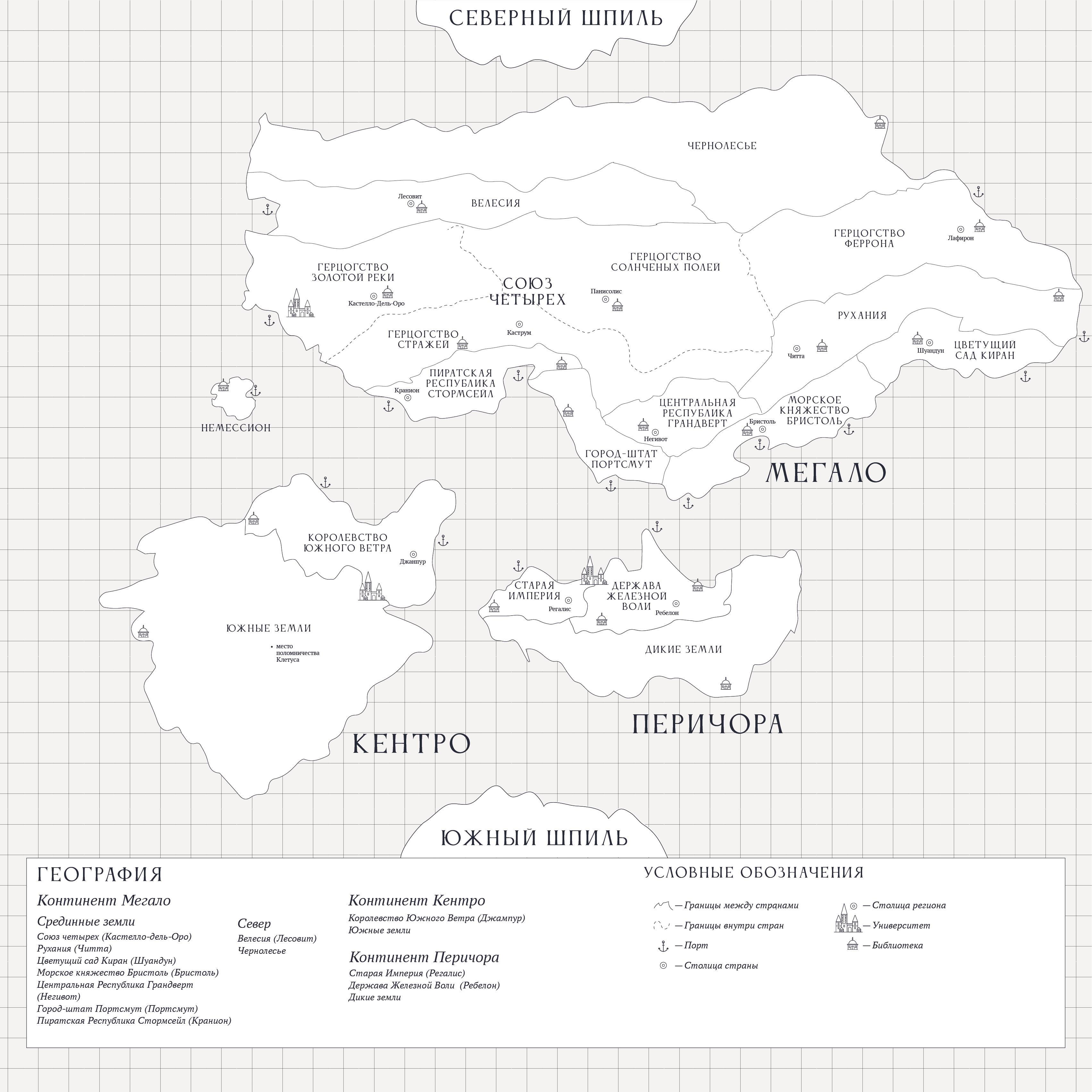 Автор: Саша МоррисонОпубликованы восьмая (вчера) и девятая (сегодня) главы фэнтези-романа «Проклятое правое дело». Также в доп.материалах книги, а теперь и здесь публикую карту мира на момент событий, происходящих в романе.
