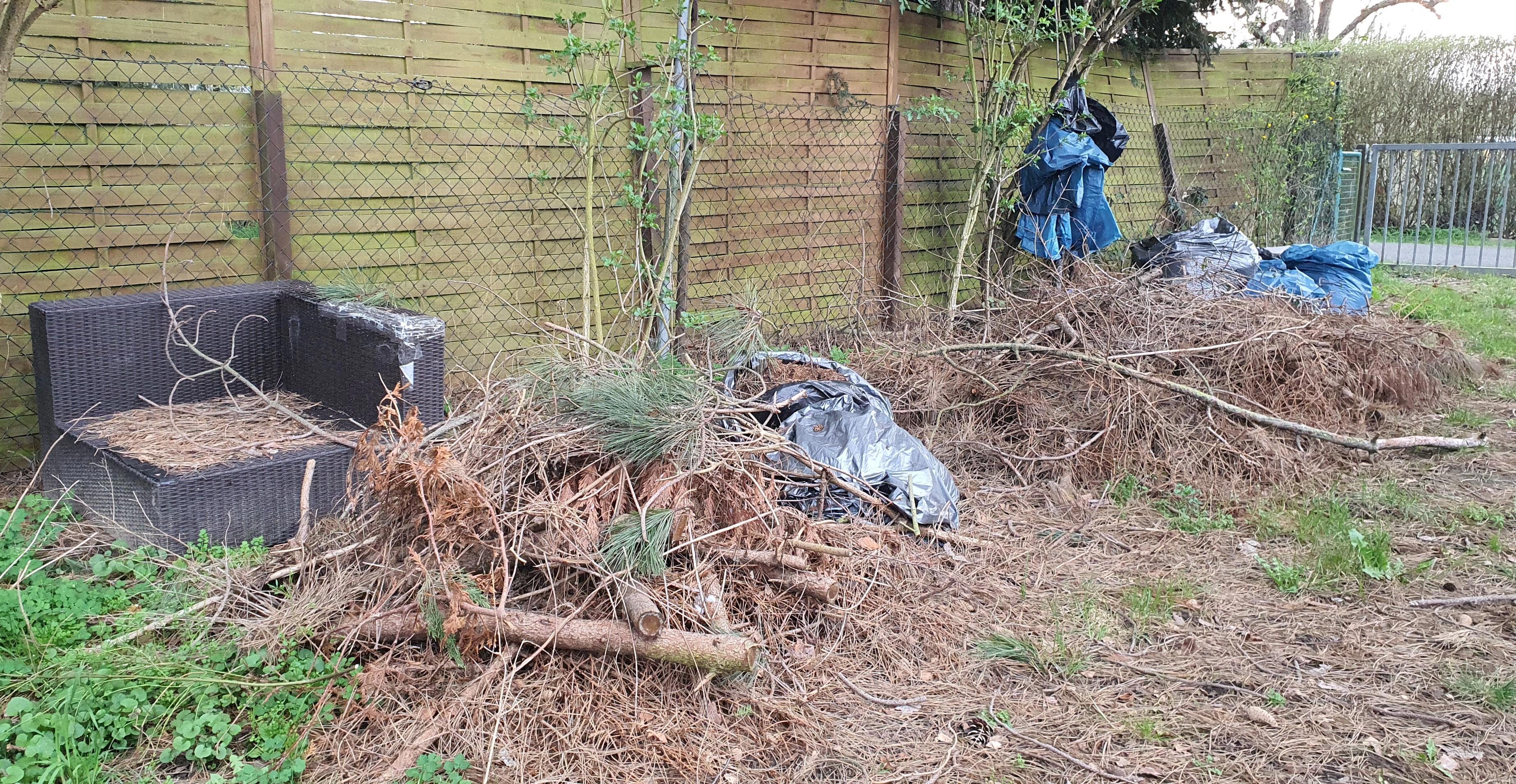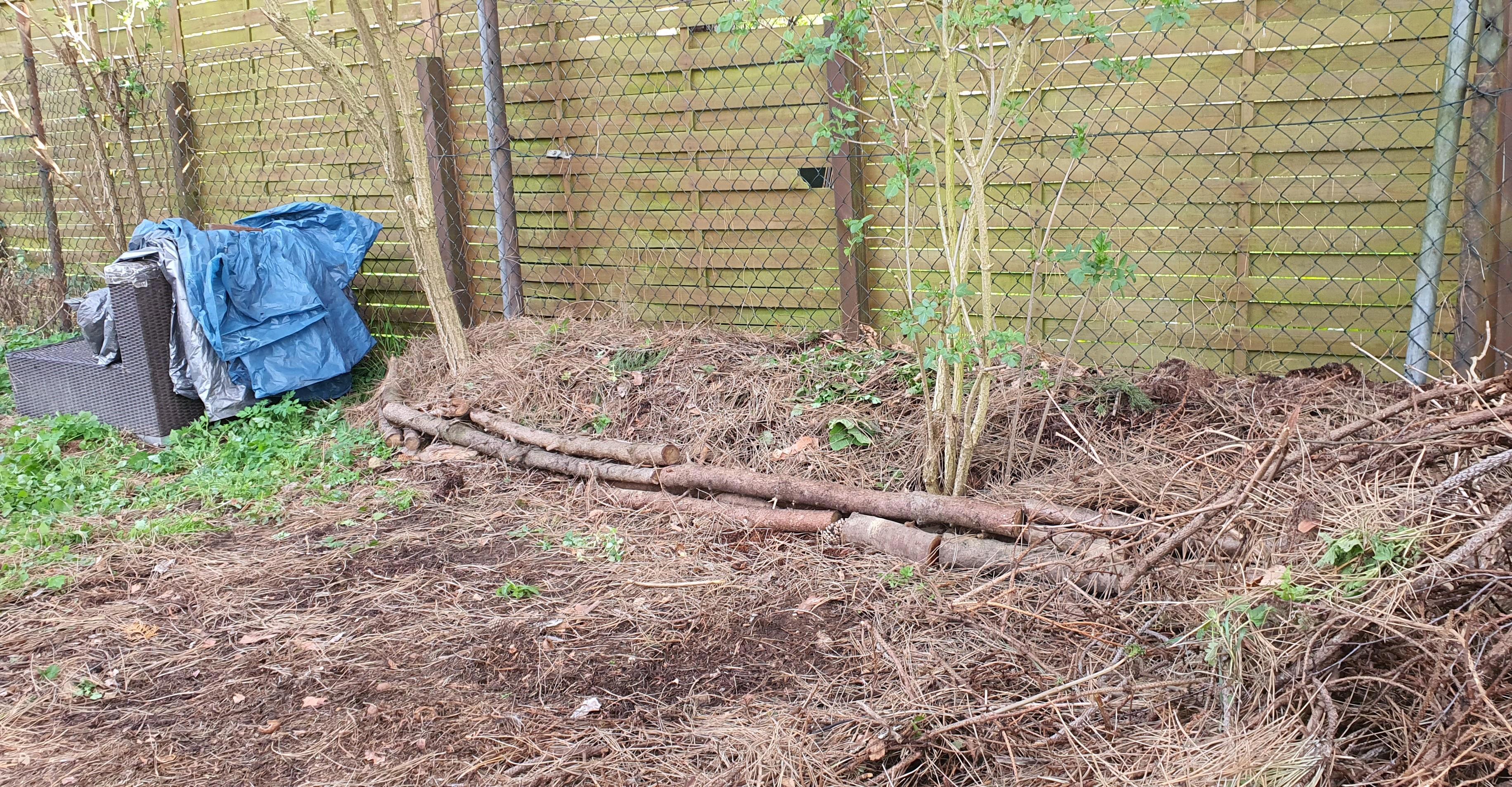 Позже приколочу к поленам доски (типа компостер большой), и будя более цивильно, аха.