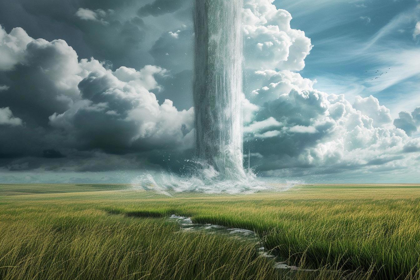 Зато впереди, совсем рядом, воздвигалась исполинская колонна, сотканная из поднимающейся вверх воды. Не меньше сотни метров диаметром. Серый аж присвистнул от восхищения, представляя, сколько тонн воды летит в этом эпическом фонтане. Целая Ниагара. Вершина колонны постепенно растворялась и терялась в синеве.