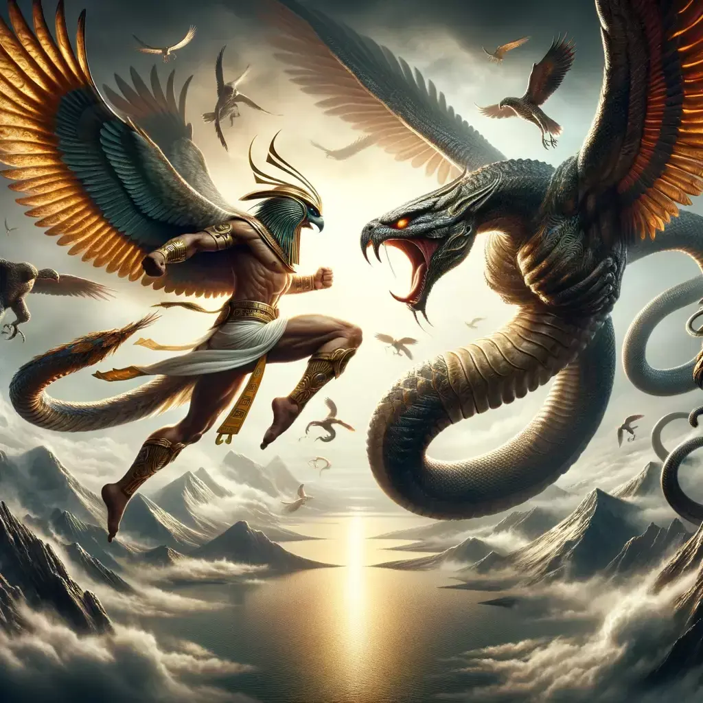 Только в этом сезоне, не пропустите! Битва титанов. Зрелищная, но короткая. Бог Гор схлестнулся в поединке с самим змеем хаоса Апопом! Не пропустите! Будет жарко!