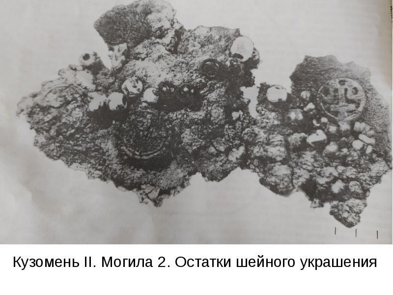 К западу от песчаных дюн удалось найти участок с тремя неповрежденными погребениями — могильник Кузомень II. К западу от песчаных дюн удалось найти участок с тремя неповрежденными погребениями —так называемый могильник Кузомень II . Частично засыпанные могильные ямы, удаленные друг от друга на 18–25 м, наблюдались на поверхности как неглубокие западания. Завернутые или накрытые лубом костяки лежали в деревянных гробовинах без крышек, на глубине 0,65– 0,7 м от поверхности, в вытянутом положении на спине, руки вдоль туловища, головой к северо-востоку. По сопутствующему инвентарю (стеклянные бусы, металлические части ремней, подвески, застежки) и с помощью антропологов двое погребенных интерпретированы как женщины, а один — как мужчина 30– 40 лет.