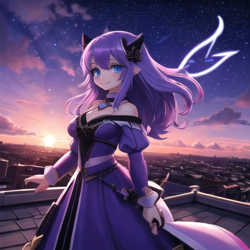 Аниме арты от нейросети, девушки на крыше