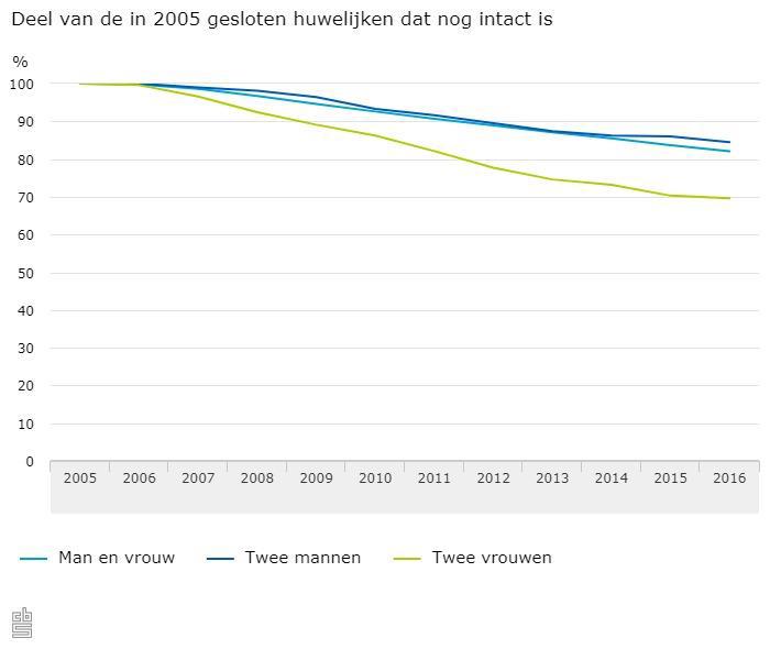 Ну и на дессерт. В России такой статистики нет, но в качестве интересного брака. Статистика гей-браков в Голландии и вероятность их распада.