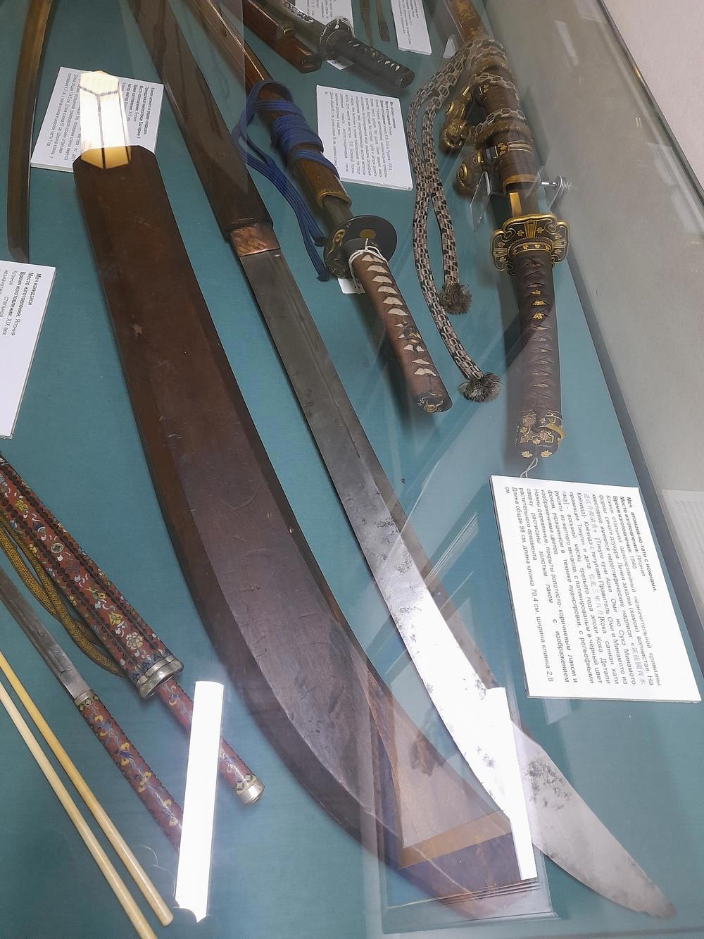 А это деревянное грубое полено - ножны для клинка нагинаты. Хоть печку топи - так оно нарушает все понятия о изящном стиле и красоте оружия