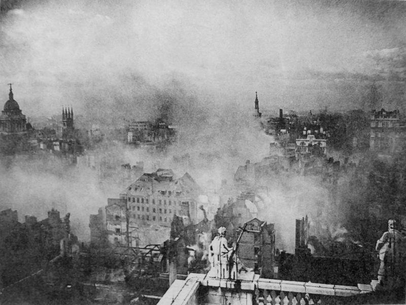 Фотография Собора на фоне охваченного пожарами Лондона стала символом стойкости защитников города.