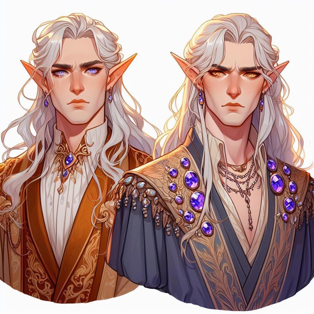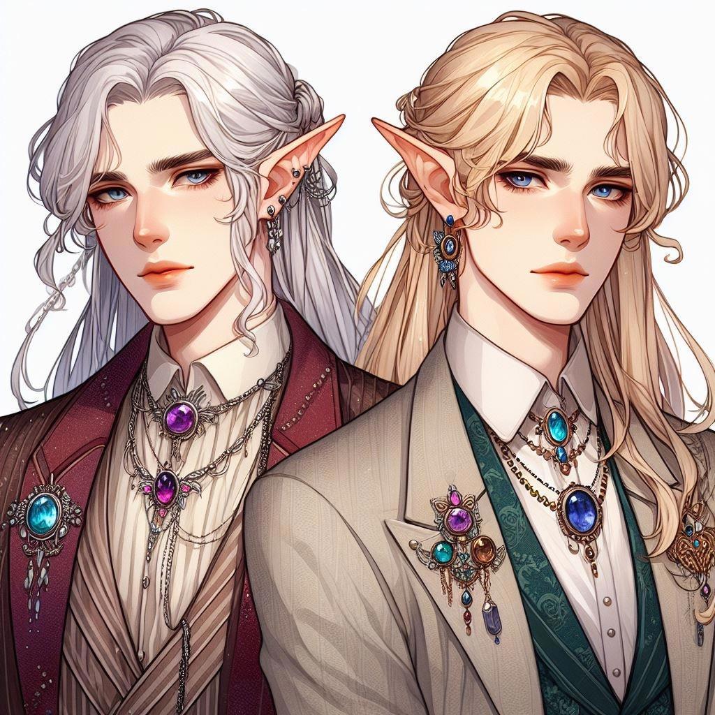 А вообще в книге было два эльфа, у одного волосы серебристые, у другого в золотым оттенком, но Бинг чаще всего их как-то по отдельности рисует, просто два портрета рядом
