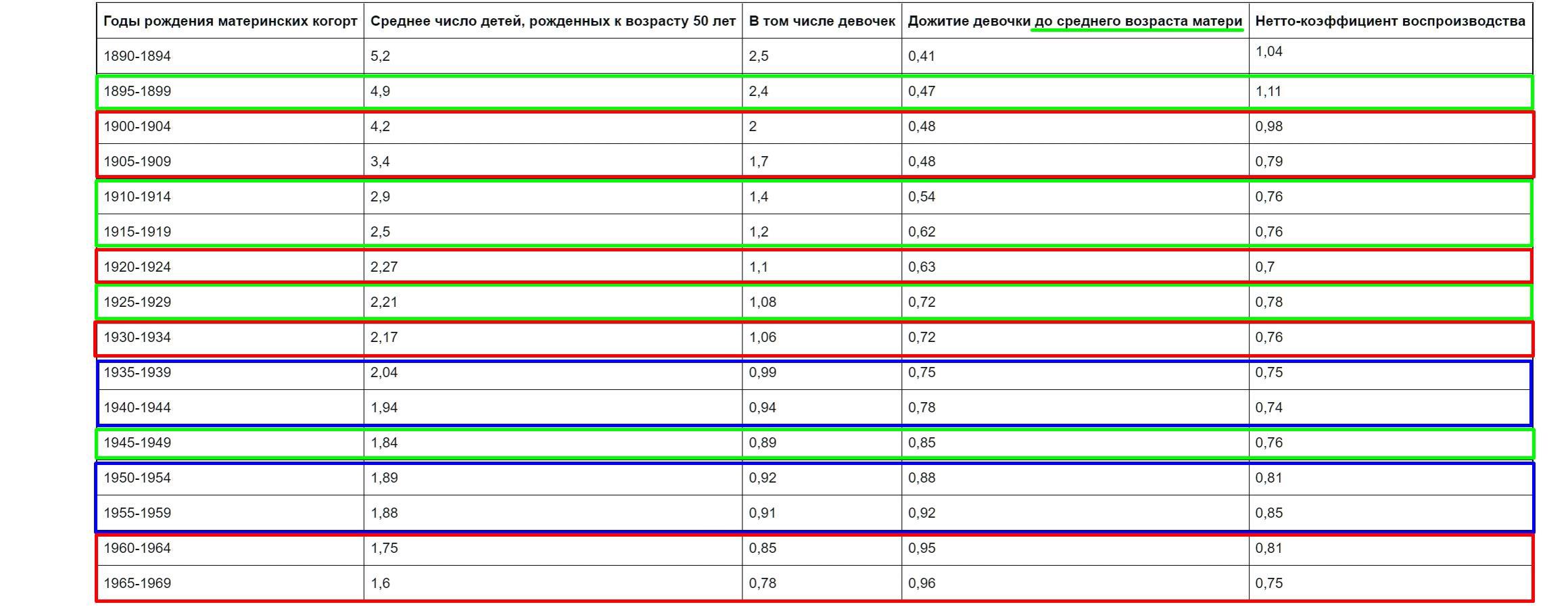 Зелёное - наблюдается заметный рост "дожития до среднего возраста матери",