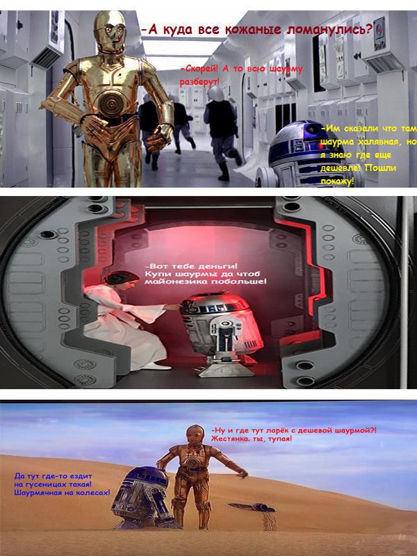 Или например в Звездных войнах Си3Пио зачем-то разговаривает с Р2Д2 тоже голосом хотя должен как совершенный кибер-механизм общаться как минимум по радио-каналу . Понятно что фильм снимали в 70 годы 20го века когда о вайфае даже еще не думали и понятно что это условность специально чтобы мы слышали что они говорят, но ведь мы понимаем что спросил Р2Д2 только тогда когда услышим ответ человека на его писки.