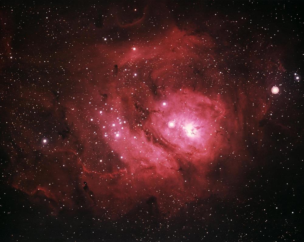 Другой пример яркой эмиссионной туманности -- "Лагуна" (М8) в Стрельце: