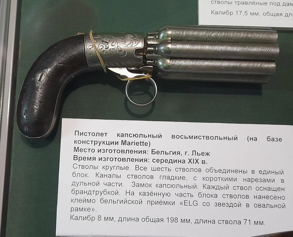 Русский капсюльный четырехствол, ниже - бельгийский восьмиствол.