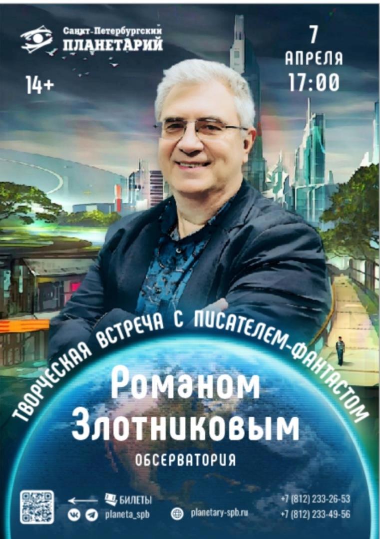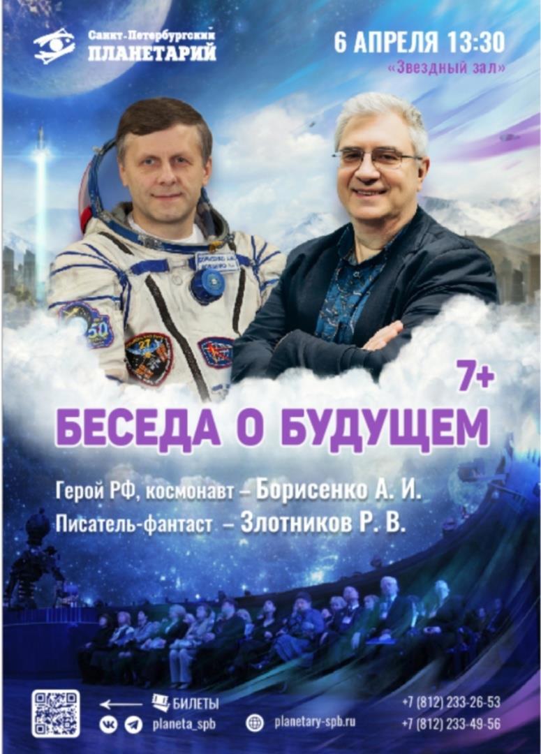 Автор: Роман ЗлотниковНу что, народ - двигаем дальше. Следующая остановка - Питер! 6 и 7 апреля. Городской планетарий на Кронверкском проспекте. 6 апреля в 13.30 совместно с космонавтом Андреем Ивановичем Борисенко, и 7 апреля в 17.00 - только один я любимый. Приходите - пообщаемся.