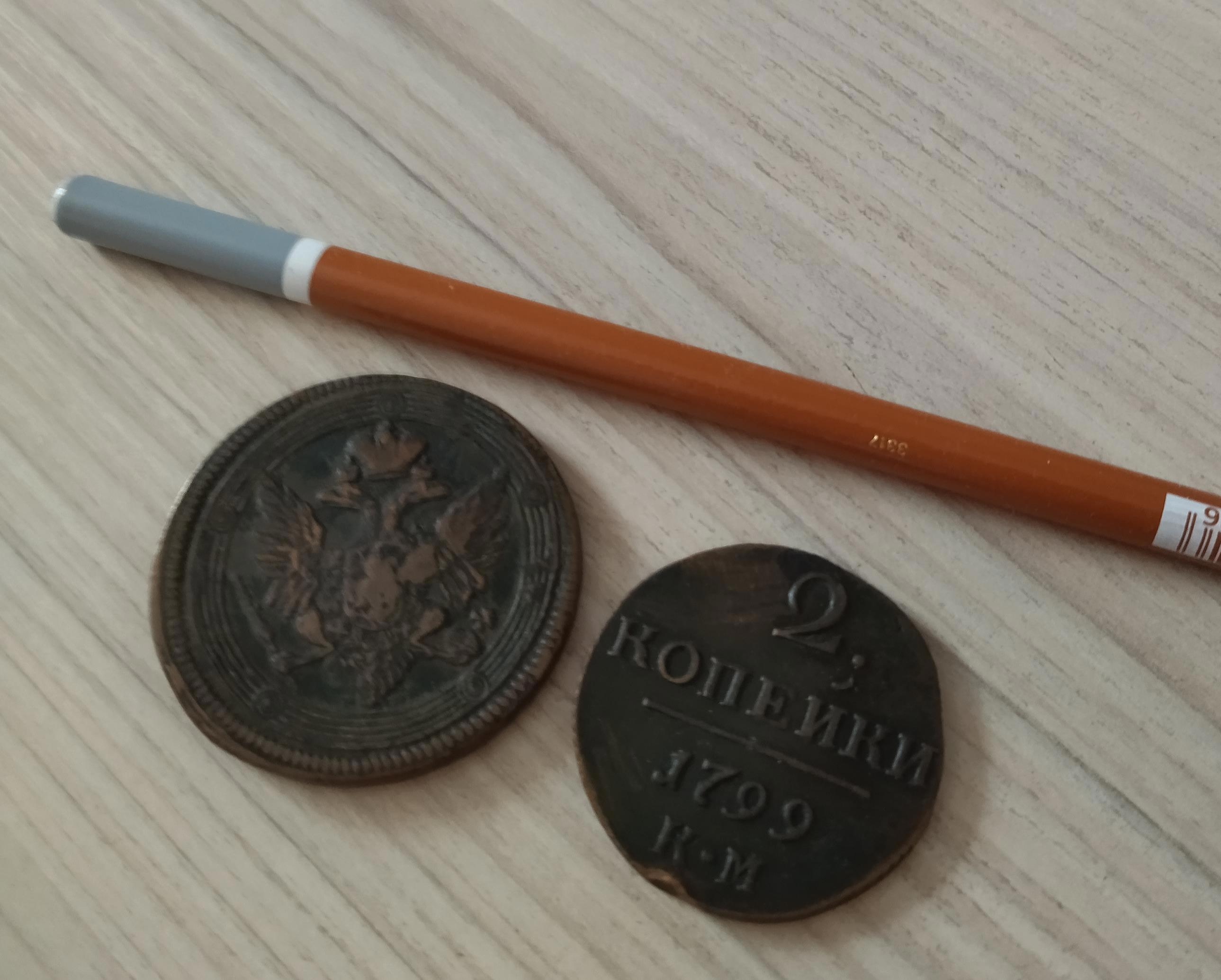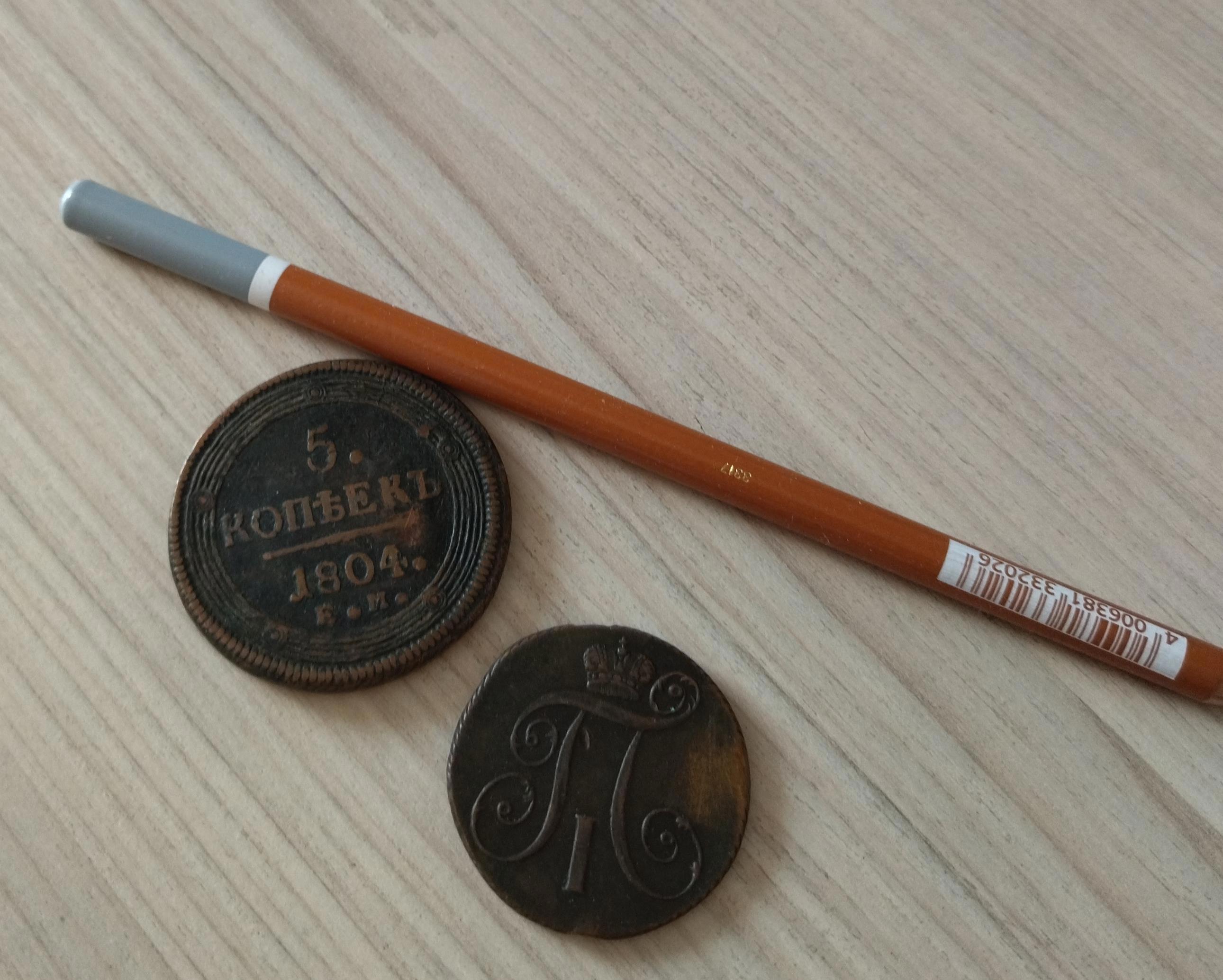 Деньги. Две медные монеты из местной меди. Видите две буковки КМ - колыванская медь. В Сибири было позволено чеканить свою монету на Сузунском монетном дворе. Возить медные деньги из России было слишком затратно, а монетки весили немало. Даже этот пятачок и двушка вытягивают примерно на 100 грамм. Смотреть тут: https://author.today/work/338588