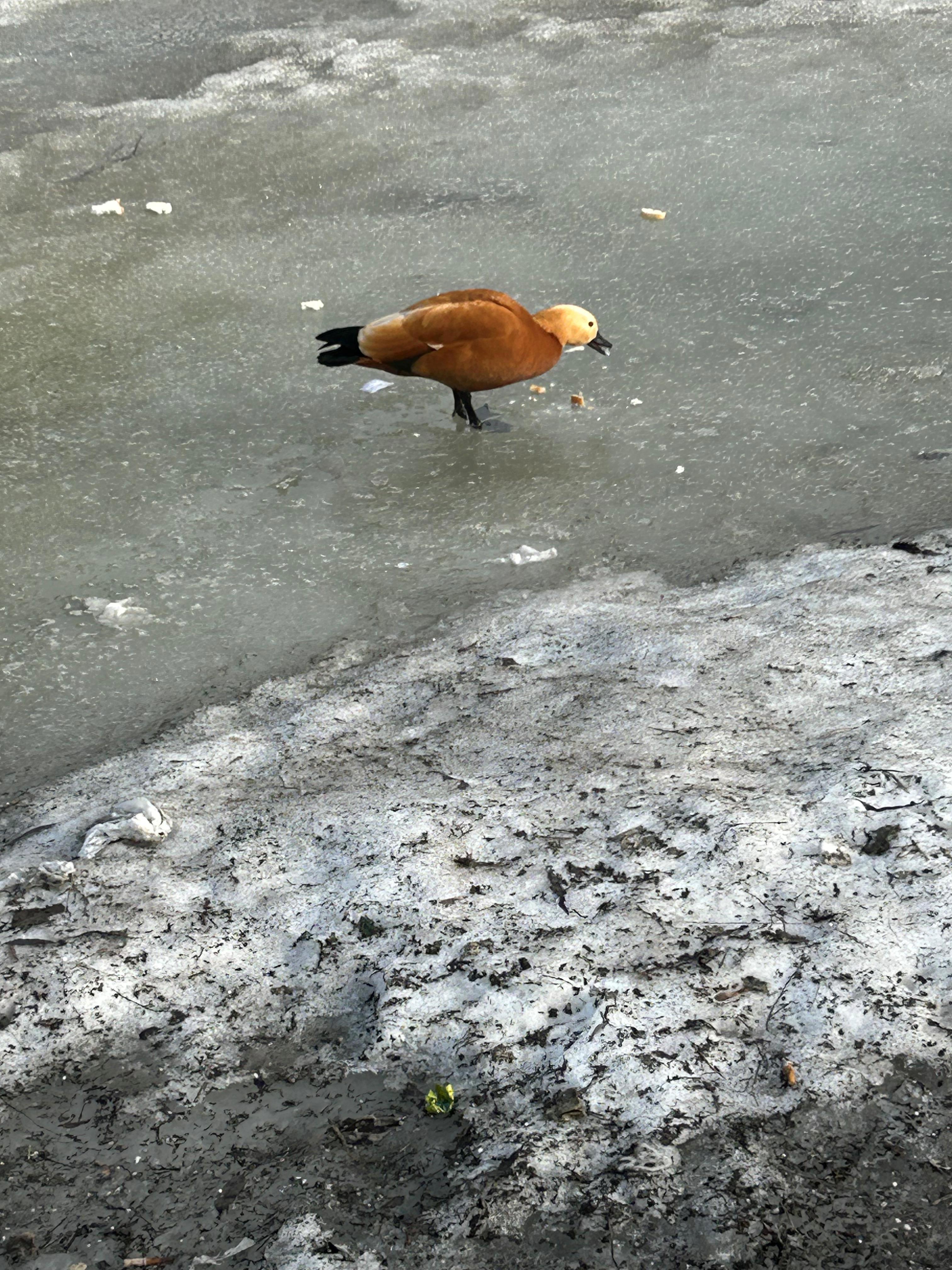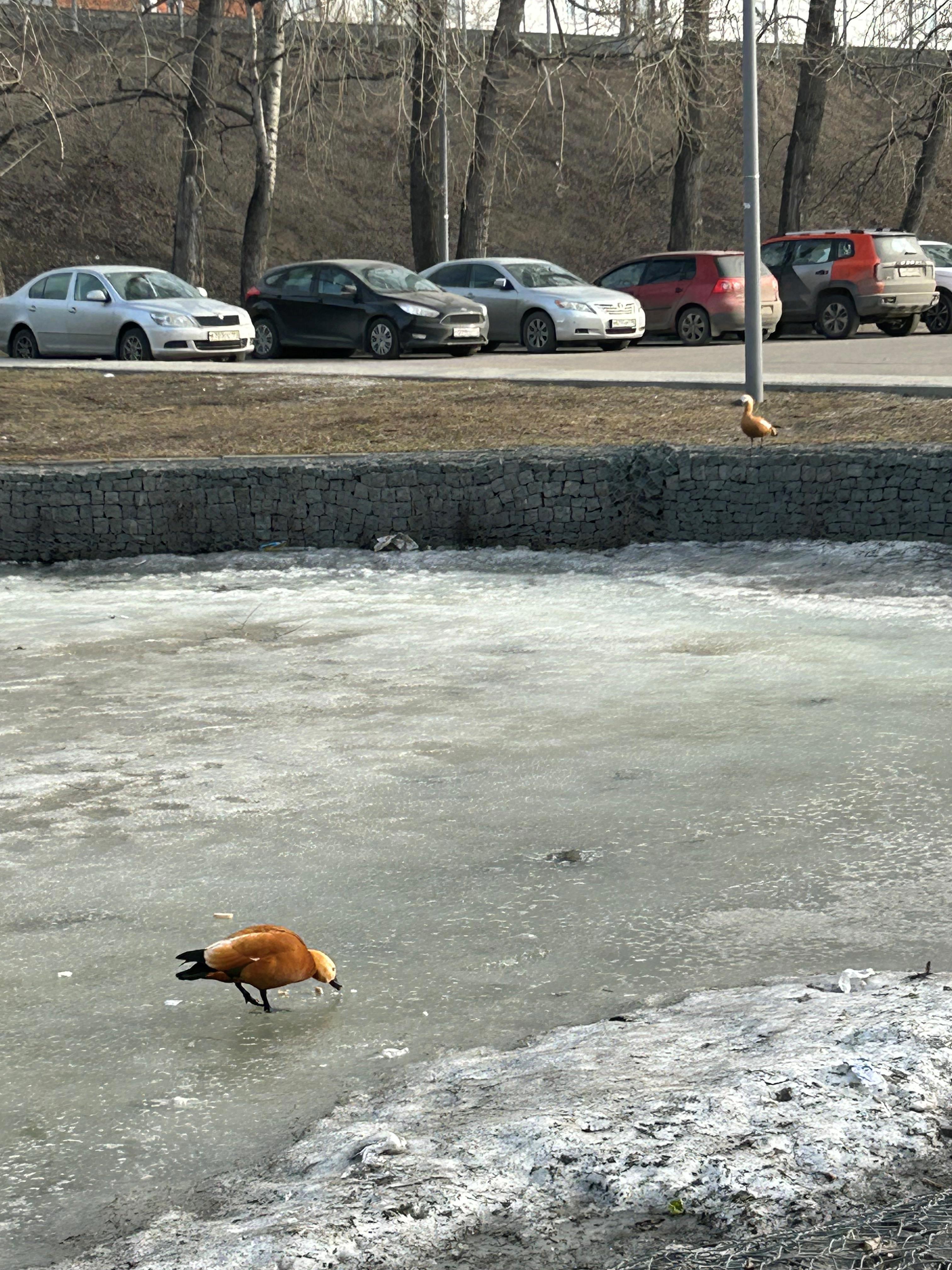 …конечно же далеко не факт что это те самые прошлогодние жильцы. И если птиц, тусующий на льду еще похож на старого хозяина, то второй птиц на парапете выглядит более молодым, менее цветастым, и даже по габаритам будет поменьше чем было ранее. Может мужик завел себе новую маленькую жену. Или это другой мужик и другая жена. Или вообще просто мимопролетные, и не факт что именно они будут обживать хозяйство. Хотя мне кажется что всё-таки тут именно заявка на проживание. Хрен знает, будем наблюдать.