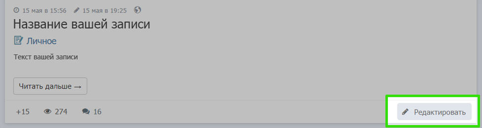 Для редактирования записи или изменения ее настроек нажмите кнопку «Редактировать».