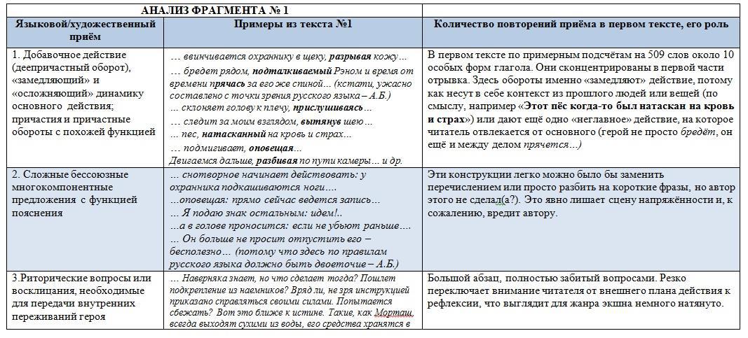 Что осталось неучтённым? Разумеется, время глаголов. Обратите внимание, что глаголы в первом отрывке написаны от первого лица, да ещё и в настоящем времени. Настоящее время – это то, что происходит с нами прямо сейчас. Очевидная мысль, да? Автор использует их, чтобы, по собственному разумению, «погрузить нас в действо». Но у искушённой боями аудитории АТ (здесь был лёгонький сарказм) нюх на такие вещи. Глаголы настоящего времени оставляют чувство незавершённости. Как будто герои просто где-то шлындают и ничего конкретного не делают. Нет результата процесса. Разве может такое быть в бою, думают читатели АТ? Конечно, нет. Значит, опытный вояка так бы не написал. Значит, писала женщина.