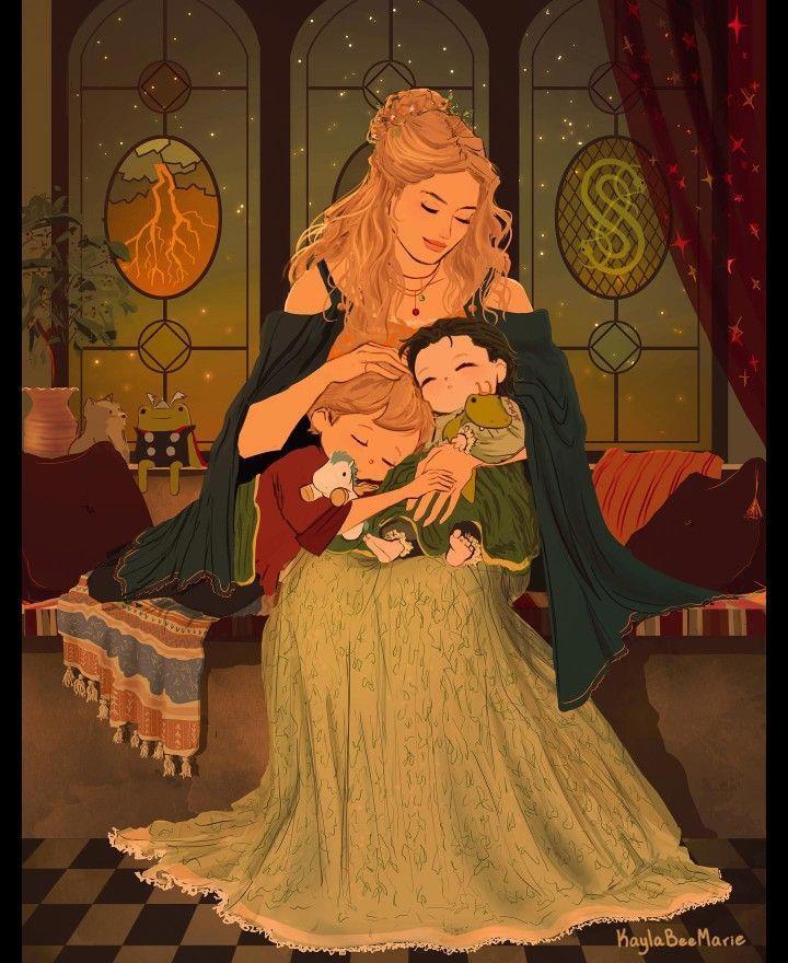 Два сорванца, Сулэ и Миррэ, прибежали нынче к сестре в комнату среди ночи, босые, в одних рубашках, промерзшие до костей. Теперь они сидели на её кровати, вдвоём под одним одеялом, как совята в гнезде. Ах, хотелось бы Лорэлинн держаться с ними построже! Да только не получалось, губы сами складывались в улыбку.