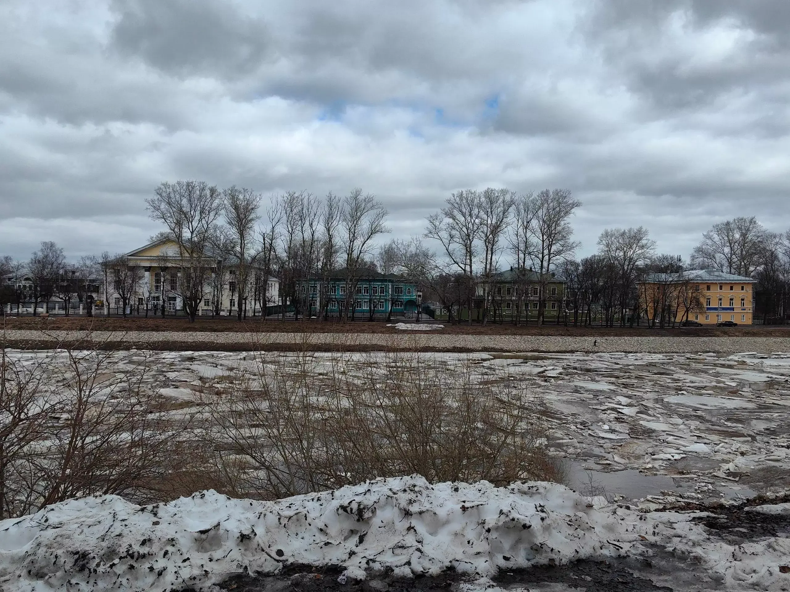 Река Вологда сегодня утром, к вечеру лёд стаял.