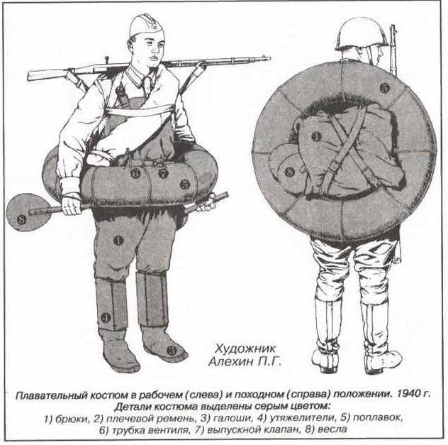 В 1931 году на снабжение РККА был принят индивидуальный плавательный костюм – ПКТ. Он предназначался для переправы одиночных бойцов через узкие и средние водные преграды и ведения боевых действий в обводнённой местности.