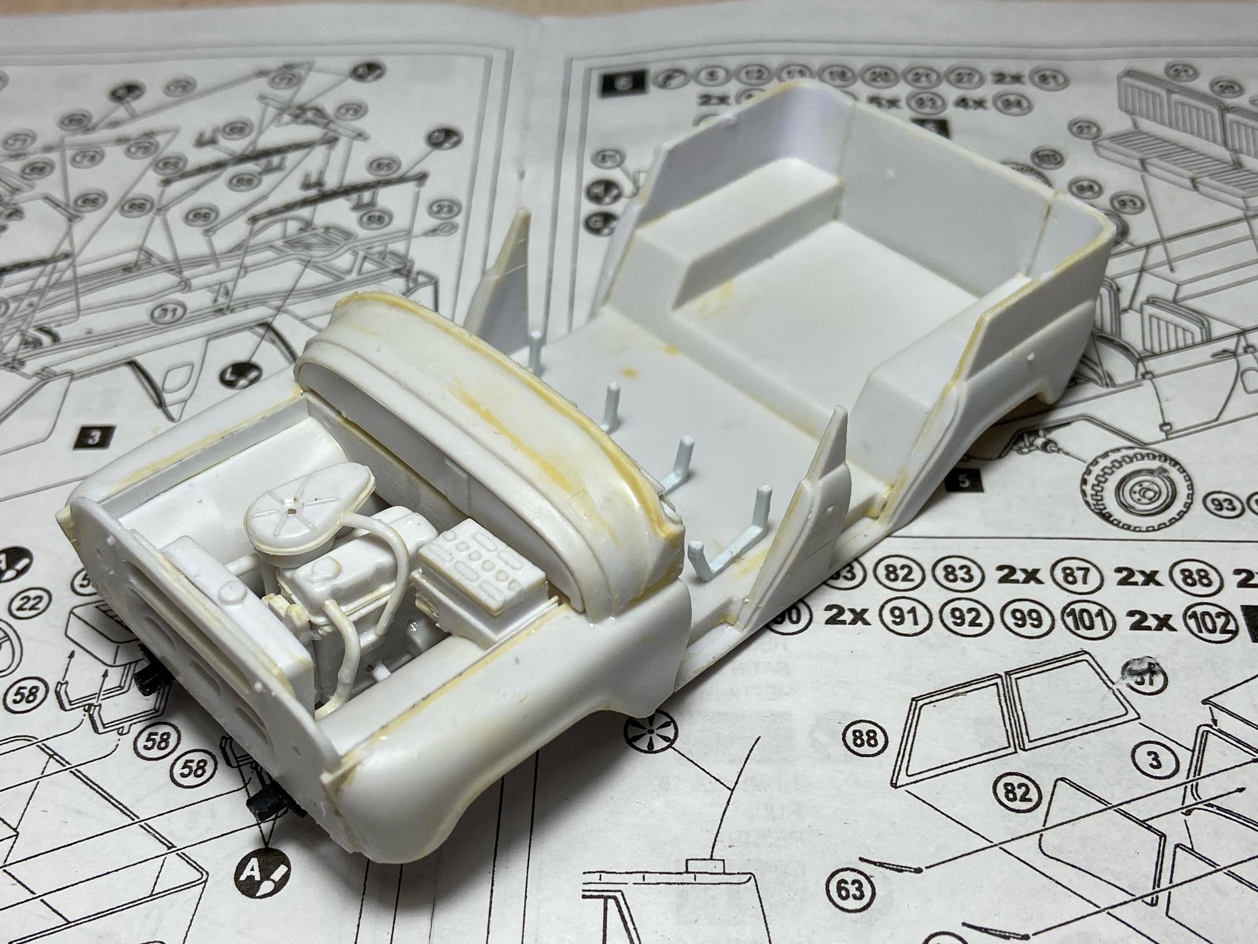В качестве донора для сгоревшего Хантера берём древний УАЗ-469 от украинской Military Wheels, в итоге доставшийся мне бесплатно (благодаря хорошему человеку), но без подвески. Да и пофиг, на диораме будет не видно.