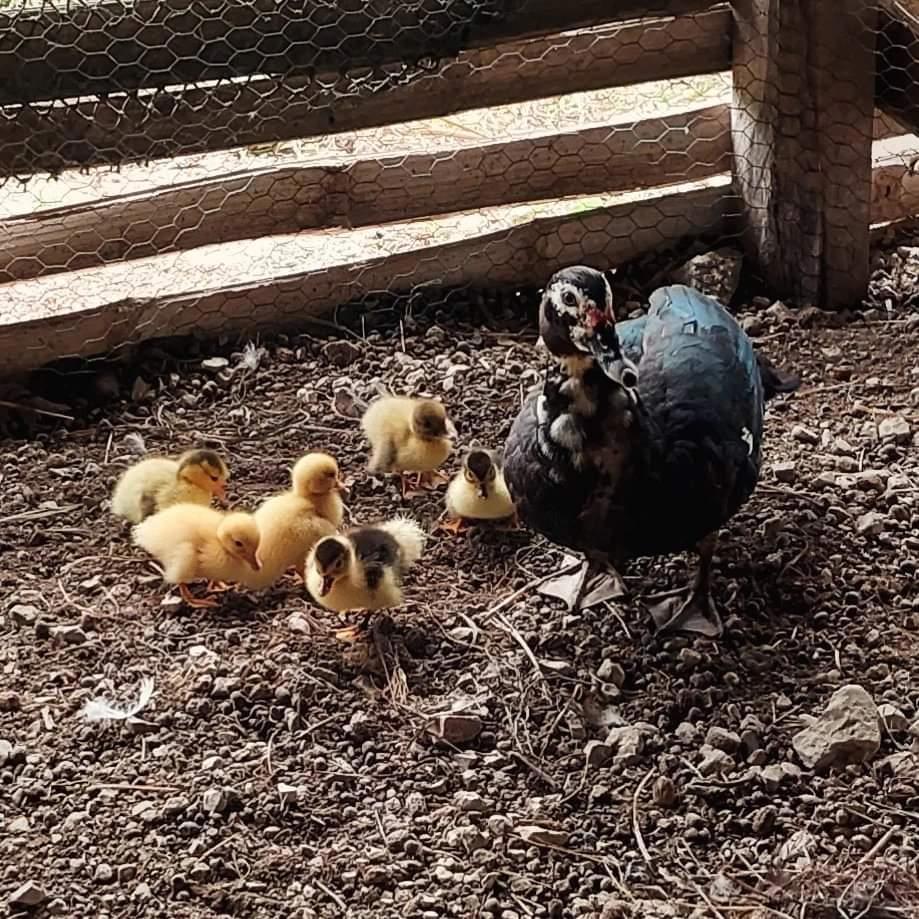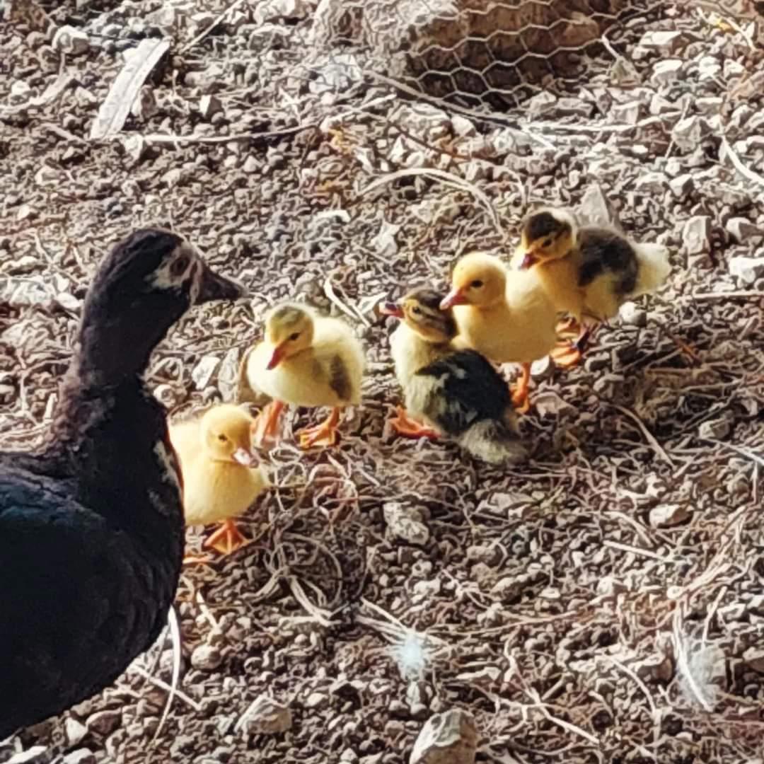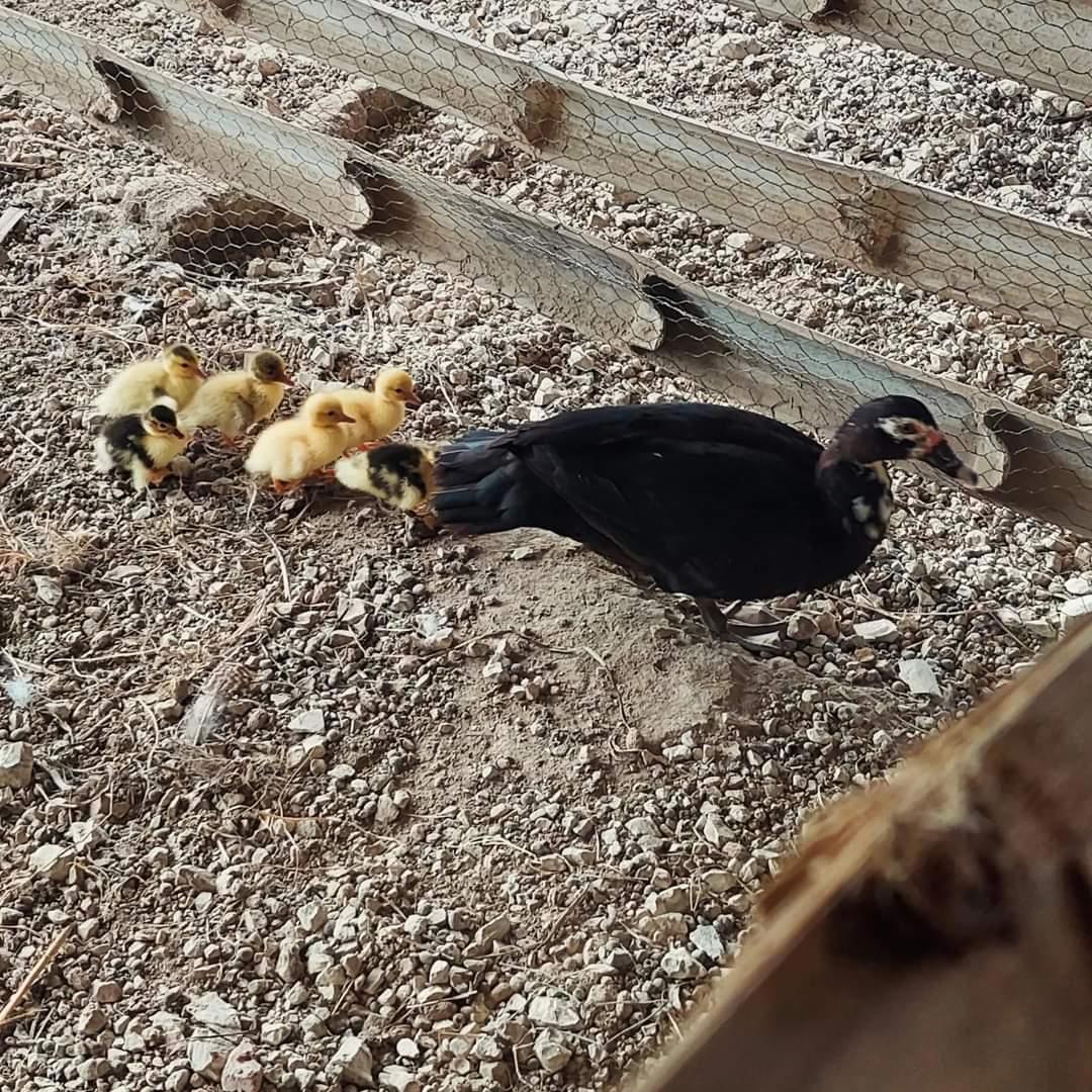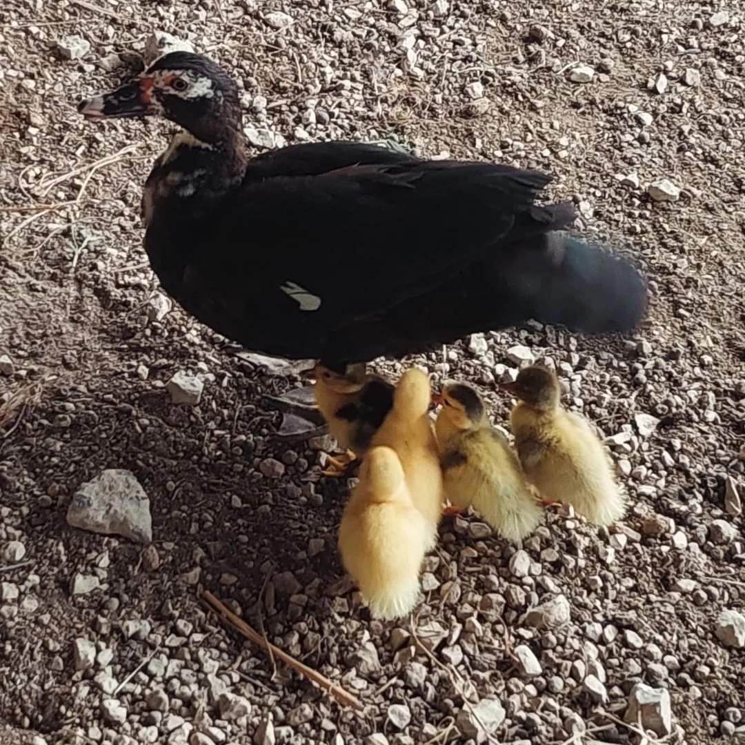 Утята похожие на тех, которых уже показывала, но утка на этот раз черная.